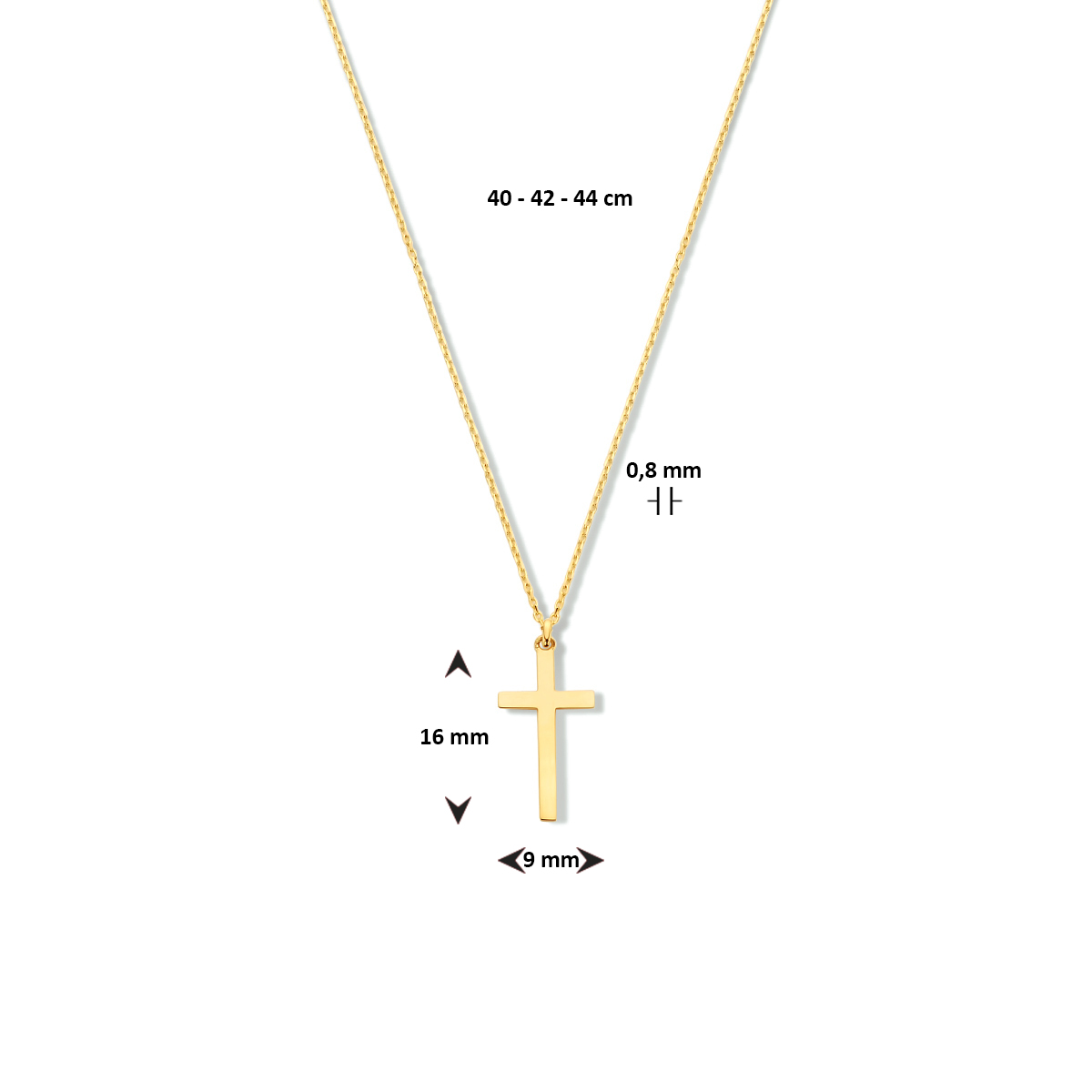 14k Geelgouden collier uitgevoerd met een kruis van 16x9mm.