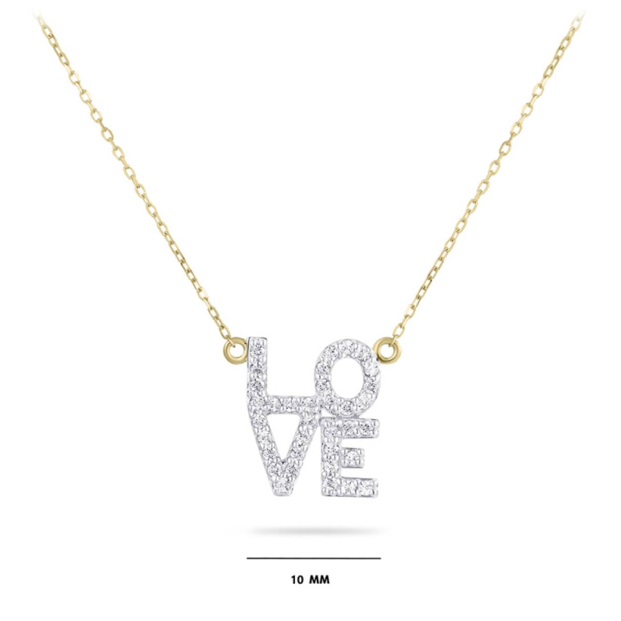 14k gouden collier met het woord "Love" met zirkonia's gezet