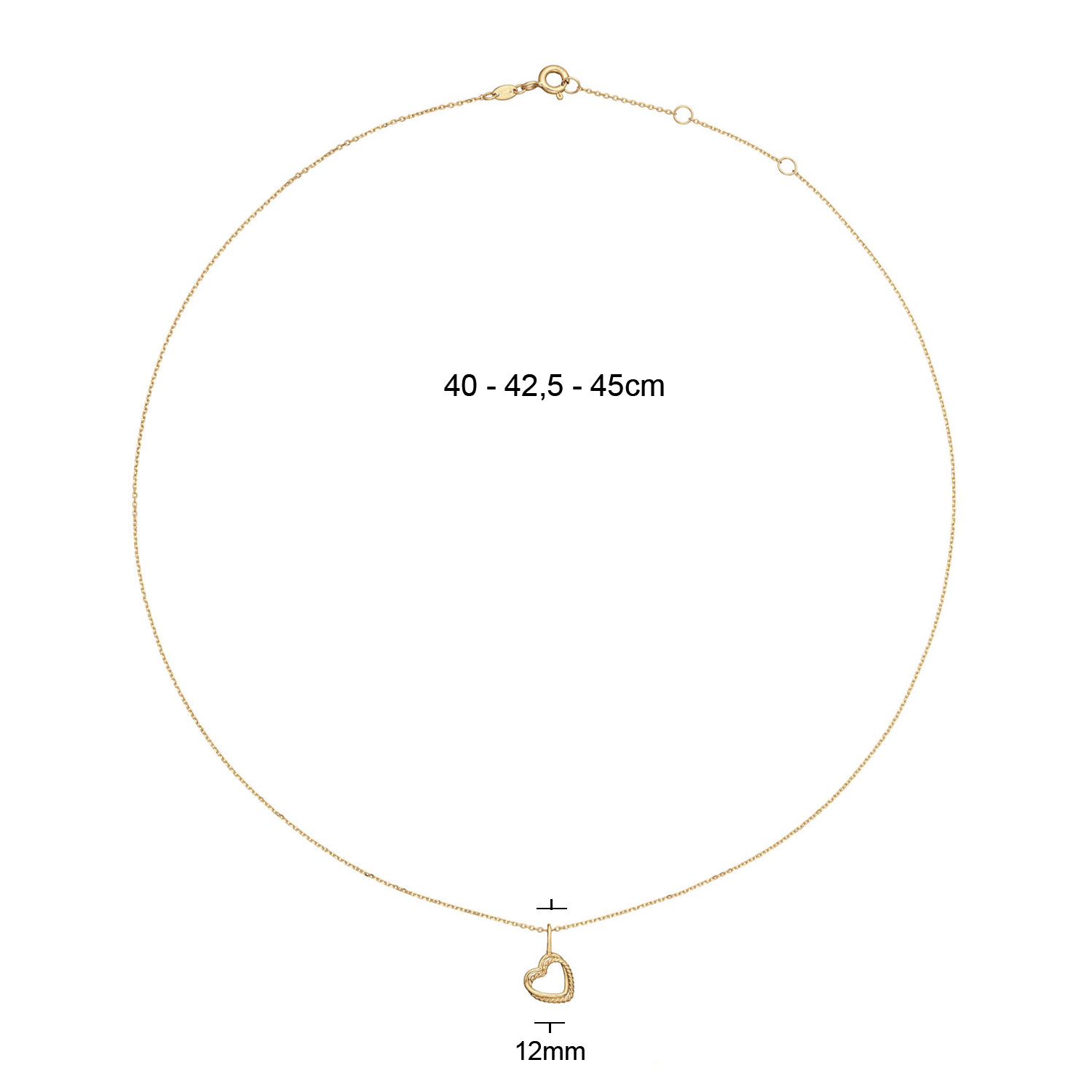 De Jackie Twisted Heart dames ketting is een prachtige gouden ketting van 14-karaats geelgoud. Met een hartvormig ontwerp, een ankerketting en een veerringsluiting combineert hij elegantie met stijl. Deze nikkelvrije ketting van 45 cm is perfect voor elke gelegenheid. Draag hem op zich voor een subtiele uitstraling of combineer met andere sieraden voor een extra leuke look!