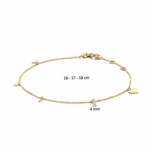 De L.O.V.E. armband is gemaakt van 14 karaat goud. Een subtiel schakel armbandje in combinatie met kleine letters, love is in the air! Voeg dit armbandje toe aan jouw arm stack voor de finishing touch.