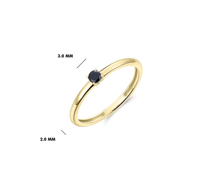 14 Karaats gouden ring met zwarte zirconia in een 4-poots zetting
