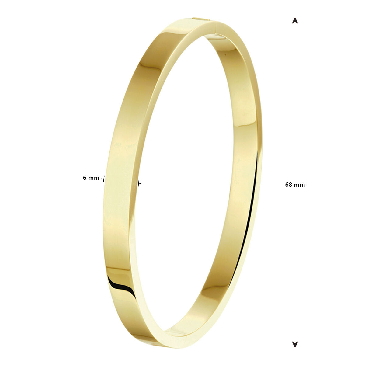 14k Geelgoud met 925 zilveren kern bangle met scharnier van uitgevoerd met vlakke buis. De bangle heeft een breedte van 6mm.