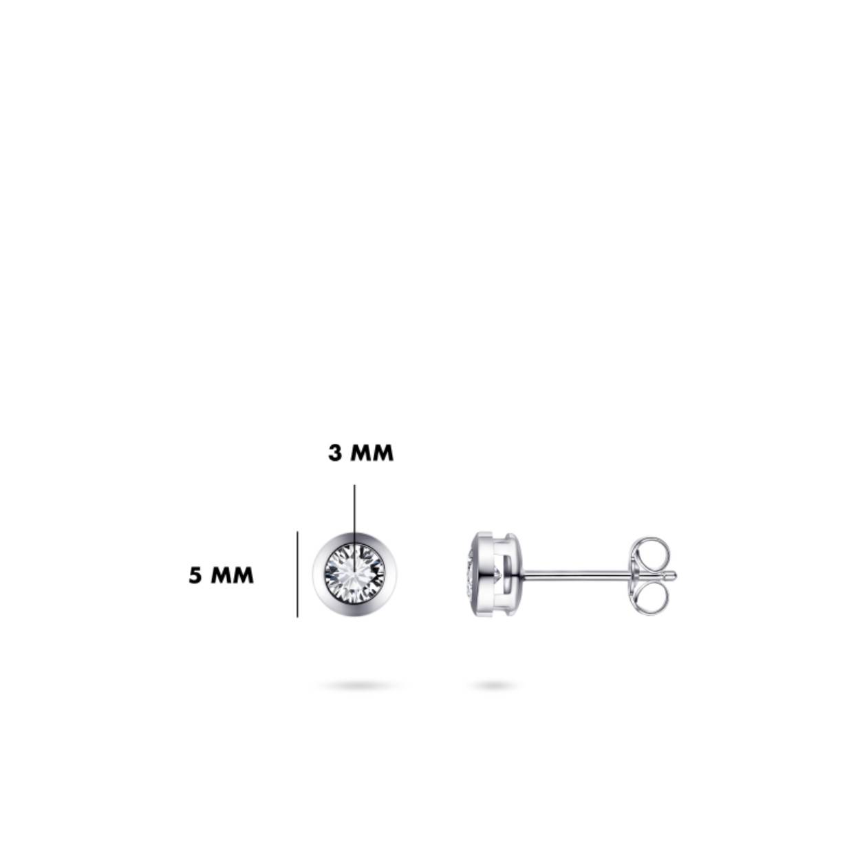 14k witgouden oorknop met een zirkonia, 3mm zirkonia is gezet in een ronde zetkast.