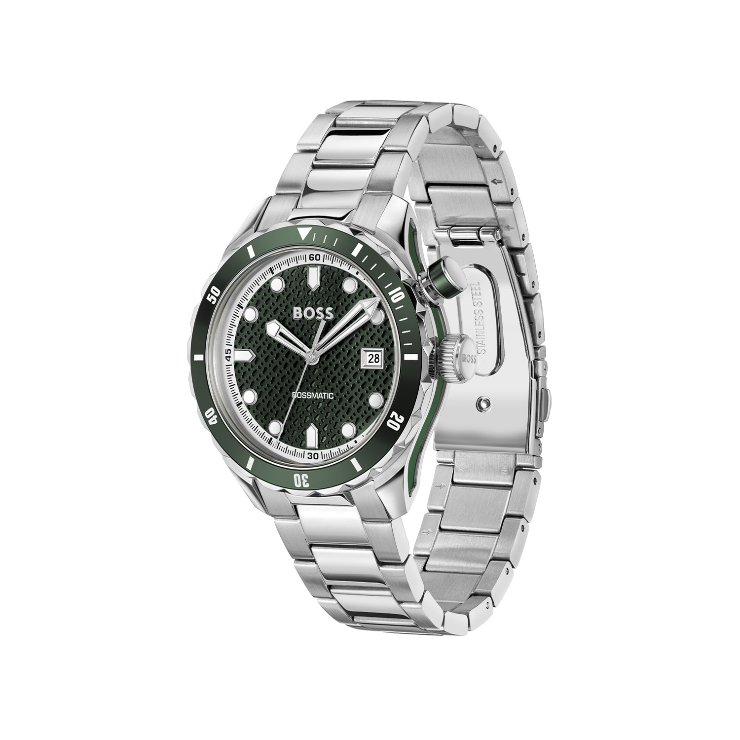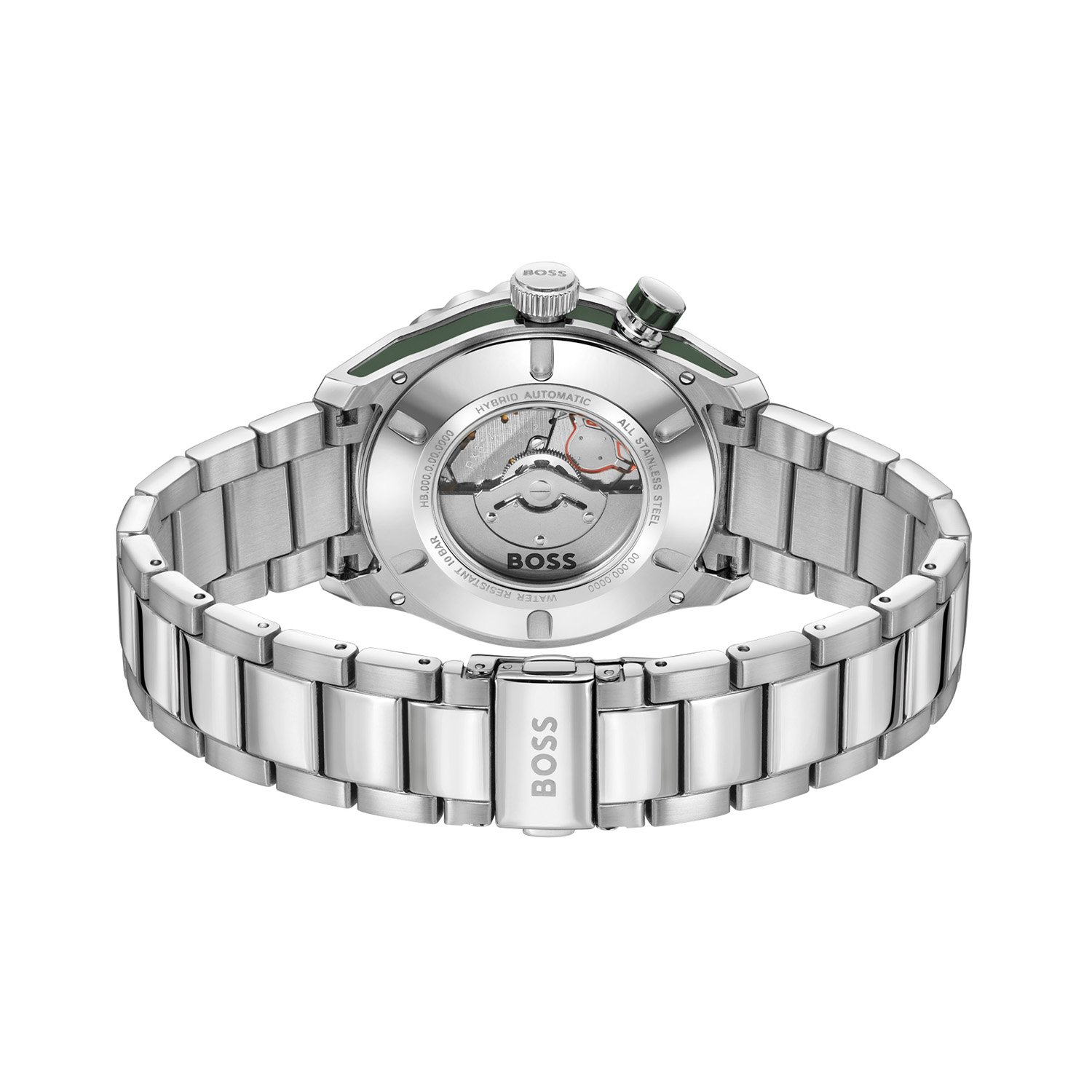 De BOSSMATIC combineert vakmanschap met een tijdloos design voor diegene die traditie en innovatie waarderen. Het horloge is vervaardigt van hoogwaardig staal en voorzien van een hybride automatisch uurwerk met een gangreserve van zes maanden.