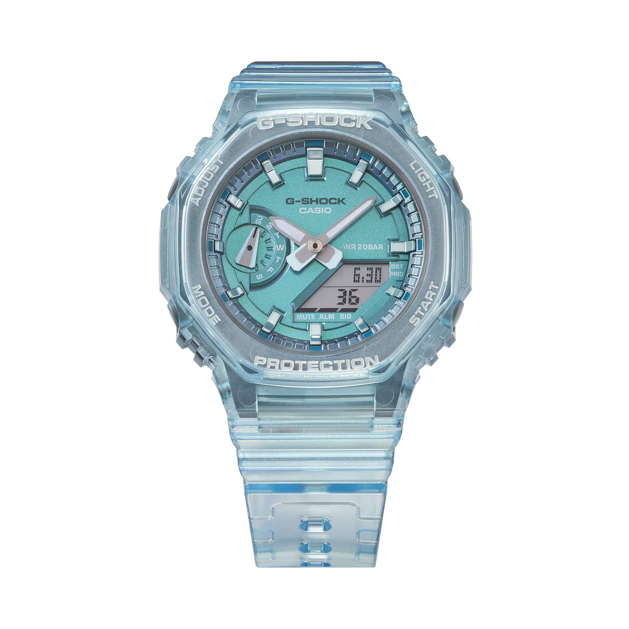 Geniet van een vleugje helder metallic plezier met de immer populaire analoog-digitale combinatie GA-2100 in een slanker en compacter profiel. Doorschijnende metallic designs in verschillende kleuren voor veelzijdige horloges die het hele jaar door bij elke outfit passen. Indexmarkeringen die zijn behandeld met een halfmatte afwerking met dampafzetting brengen de heldere metallic look tot leven. De wijzerplaat en de ring op de blauwe en roze modellen zijn behandeld met micro-gepolariseerde verf voor een mysterieuze en subtiele uitstraling.