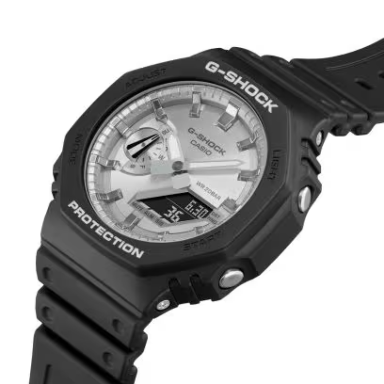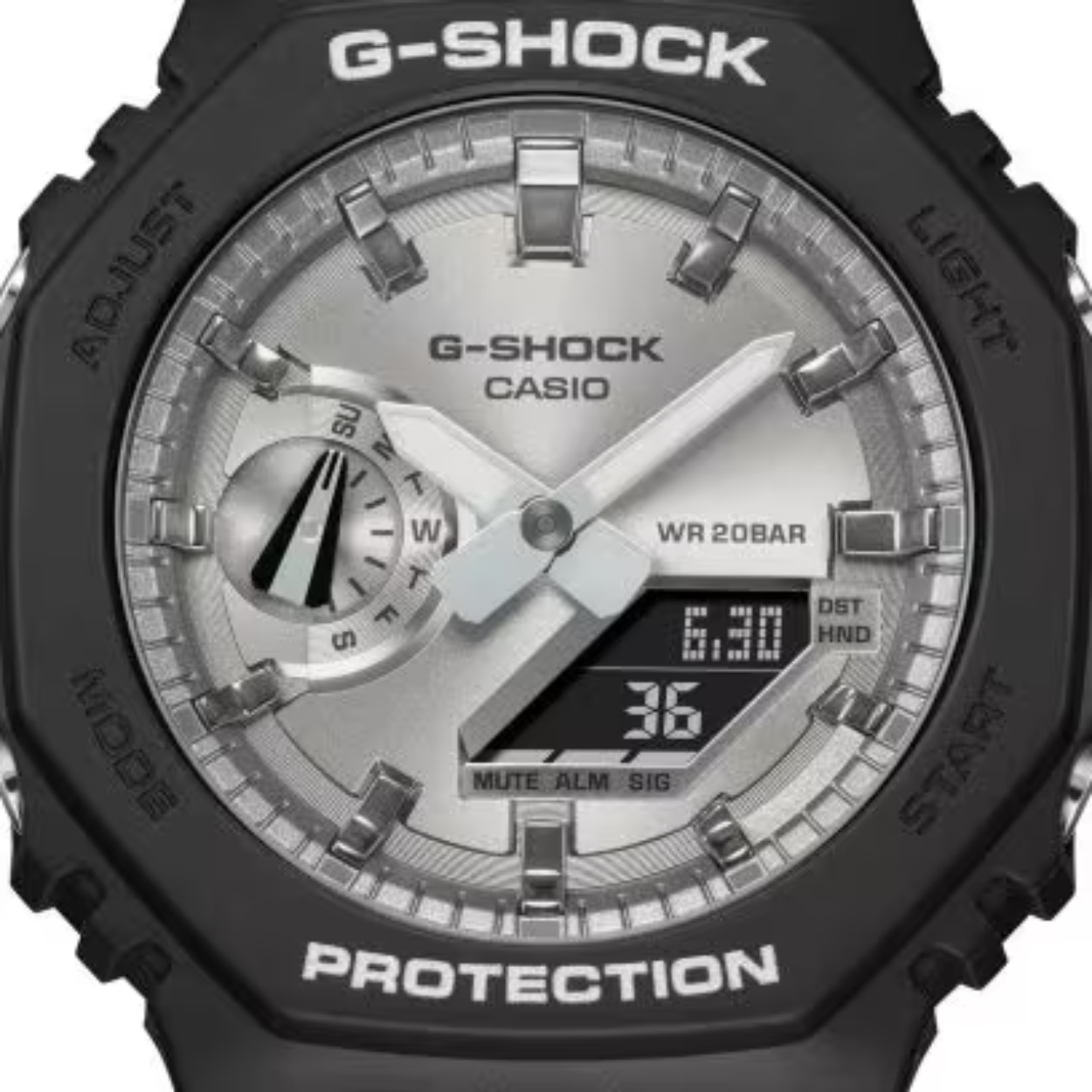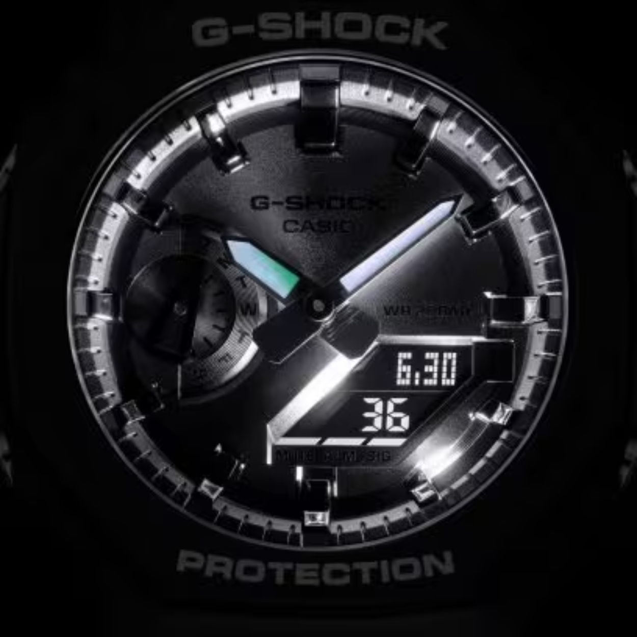 Ga voor metaal in coole, gerafineerde kleuren met deze slanke GA-2100 die is geïnspireerd op het ontwerp van de allereerste G-SHOCK ooit.