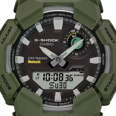 De analoog-digitaalcombinatie GA-B010 heeft een grote behuizing met een groot, gemakkelijk af te lezen display. Heerlijk gedetailleerde afwerkingen - met een bezelring die is behandeld met een dampafwerking, een zonnestraalafwerking voor de wijzerplaat en een metallic afwerking op de wijzerplaat - voegen extra waarde toe aan het stoere ontwerp.
