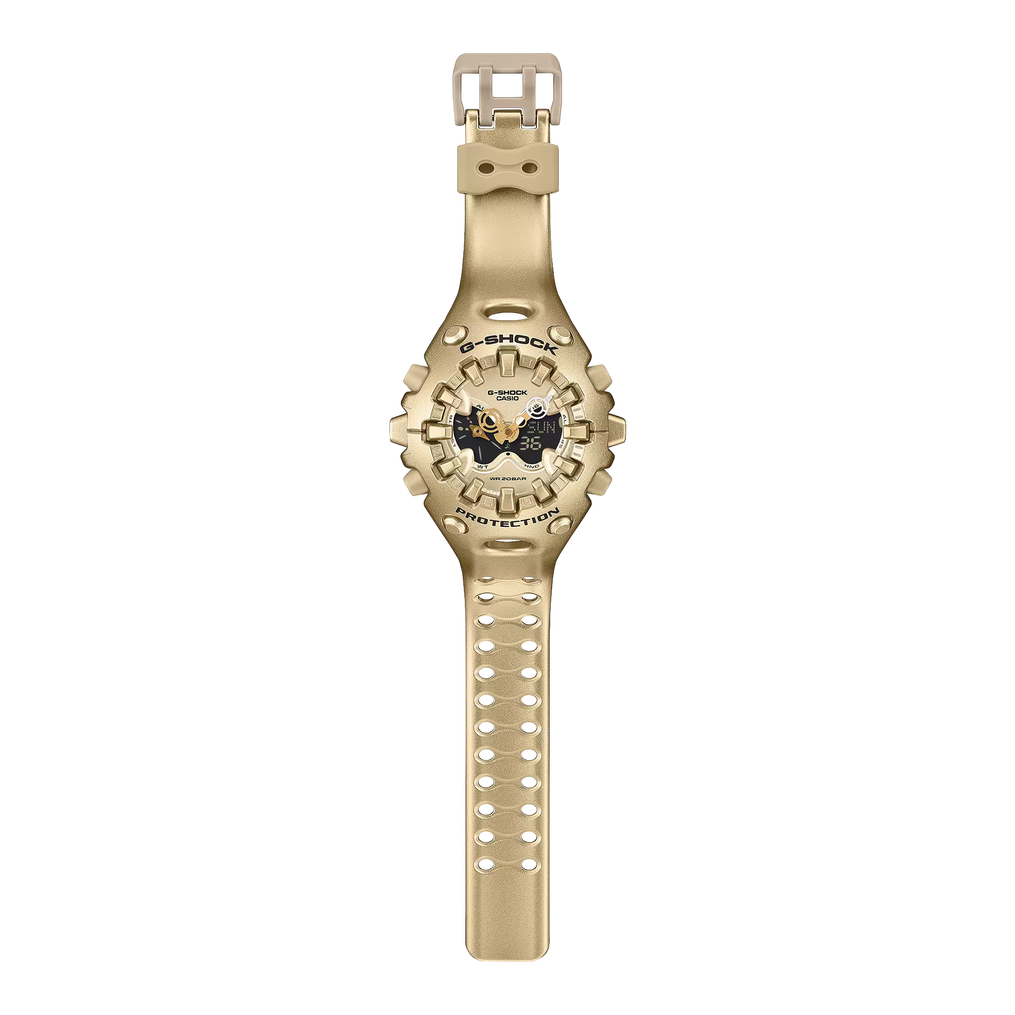 De GA-V01 combineert een organische vormgeving met scherpe onderdelen en een groot LCD-scherm met volledig scherm, de nieuw ontwikkelde Shock Release Hand en andere innovatieve ideeën die de stoere G-SHOCK-identiteit weerspiegelen.