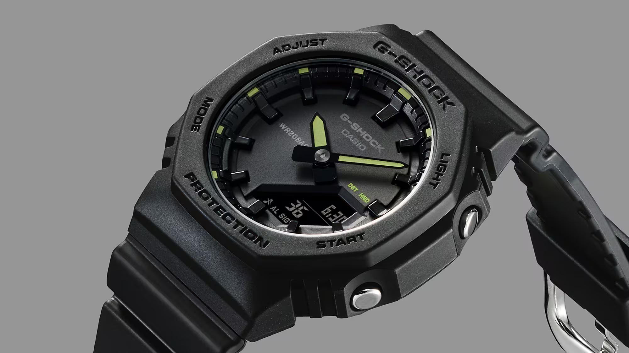 Bij de GMA-P2100SA beginnen we met klassiek zwart en voegen daar accenten in levendige tinten aan toe, geïnspireerd op sportuitrusting, om een opvallend contrast te creëren dat zorgt voor een echte sportieve stijl.