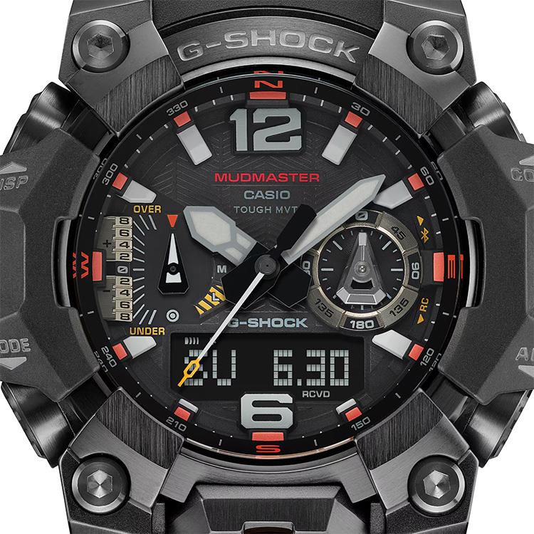 De MUDMASTER GWG-B1000EC heeft een structuur die bestand is tegen stof, modder, trillingen en schokken, en biedt tijdregistratie op zonne-energie met Bluetooth® en radiogestuurde precisie, Triple Sensor-technologie en meer. Het krachtige ontwerp zorgt voor duurzaamheid en een comfortabele pasvorm dankzij een inventieve combinatie van materialen, waaronder met koolstofvezel versterkte hars en gesmede metalen. Gebruik de locatie-indicatorfunctie om de richting van een doelbestemming te zien via een wijzer op het horloge.