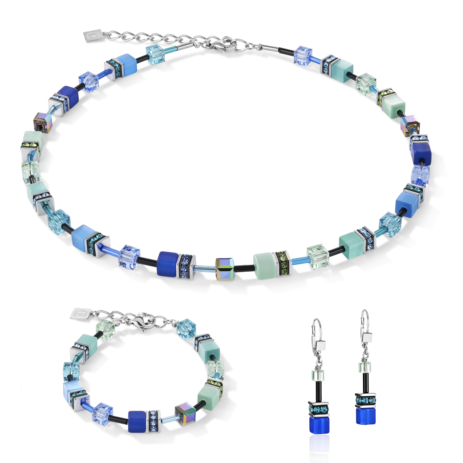 Coeur de Lion GeoCUBE® armband vervaardigd met synthetisch tijgeroog, Swarovski kristal, polaris, strass rondellen en staal