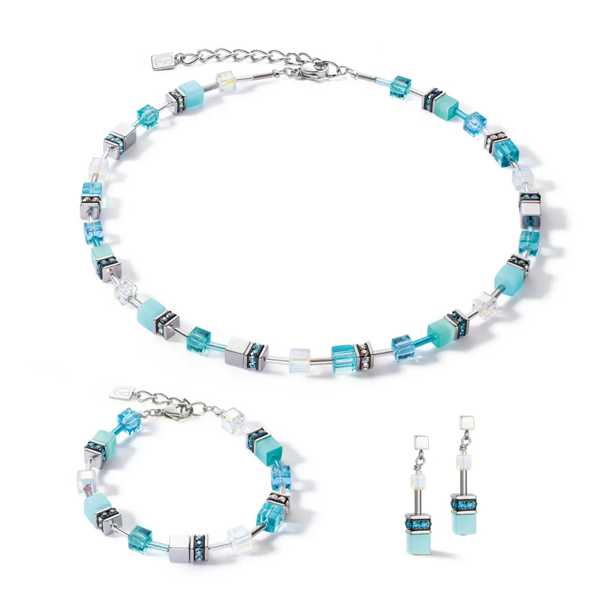 Het stralende turkoois en verfrissend blauw van deze prachtige armband voegen de perfecte kleur toe aan je look. Of het nu afzonderlijk of in een set is, de sieraden zijn echte blikvangers.
