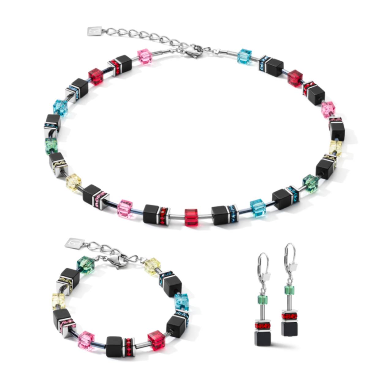 GEOCUBE armband met mat onyx, Swarovski kristallen en strass rondellen in regenboog kleuren.