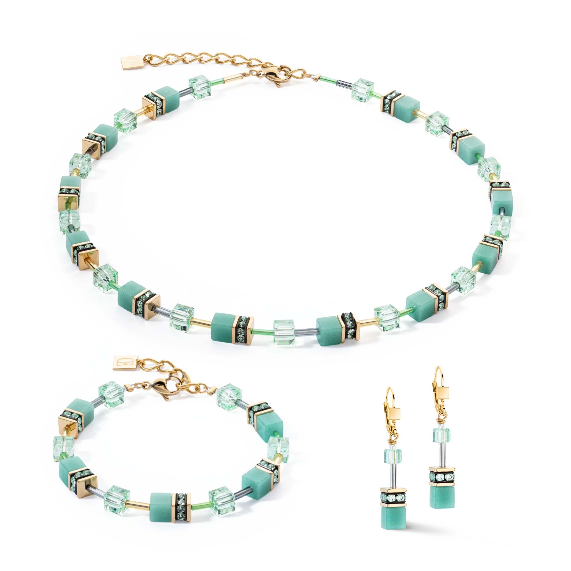 Coeur de Lion GeoCUBE® collier in verguld staal en groene kralen