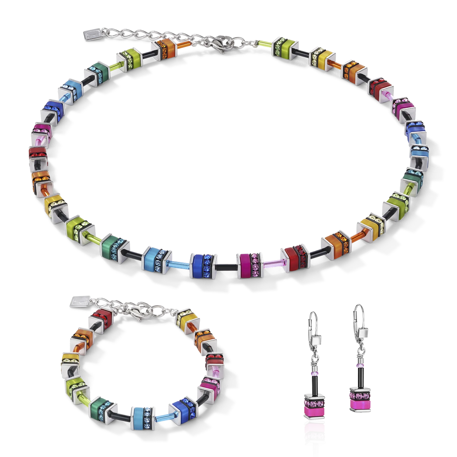 Coeur de Lion collier Multicolour Rainbow is vervaardigd van synthetisch tijgeroog, Swarovski kristallen, stalen sluiting en verlengketting. 42-48cm lang.