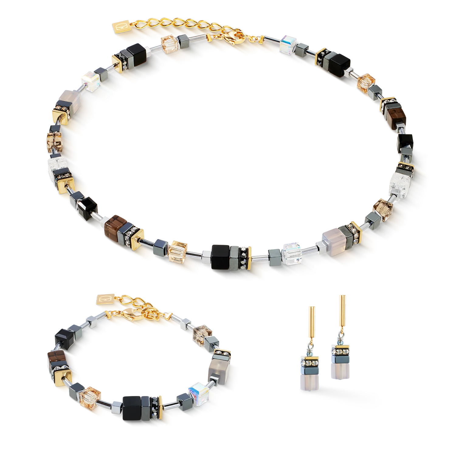 The Stone Whisper earrings pick up on the collection's calm, natural play of colours. Polished agate, sparkling crystals and shimmering metallic haematite merge to create a clear, stylish design. Gold-coloured stainless steel provides a warm contrast - discreet, modern and perfectly coordinated with the necklace and bracelet.