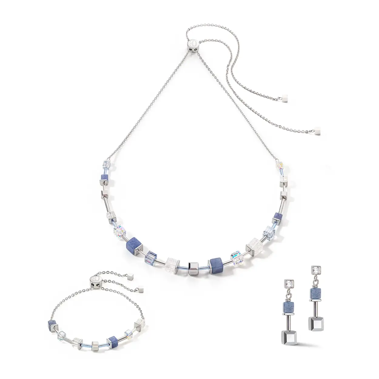 Stalen Coeur de Lion oorhangers vervaardigd met blauw aventurijn en Swarovski kristallen.