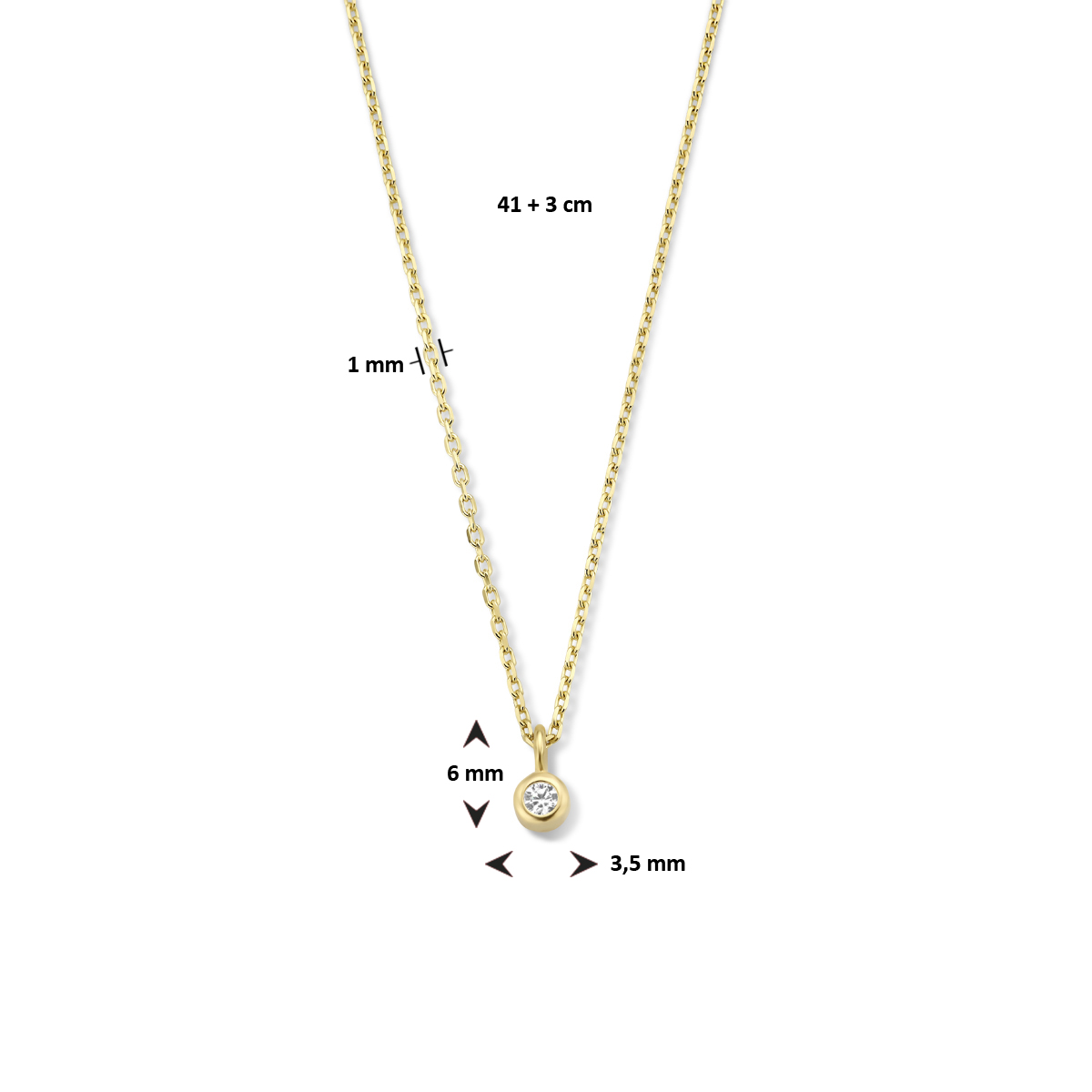 14k Geelgouden collier met heldere zirkonia. Het collier heeft een draaglengte 41cm en een extensie van 3cm. Uitgevoerd met een karabijn sluiting.