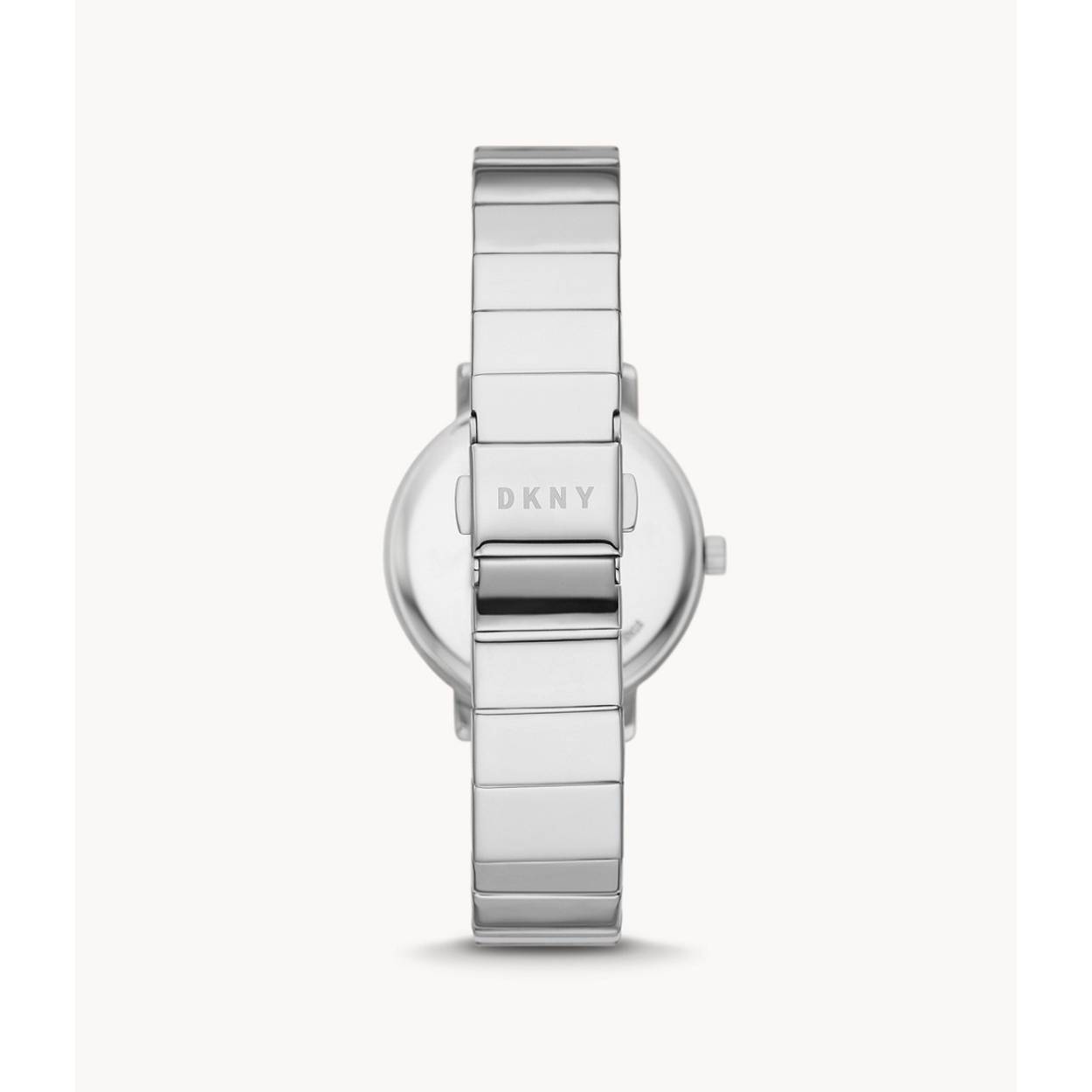 Dit DKNY horloge, uit the Modernist collectie, heeft een stalen band en kast. De wijzerplaat is mat zilverkleurig met zilverkleurige indexen en wijzers