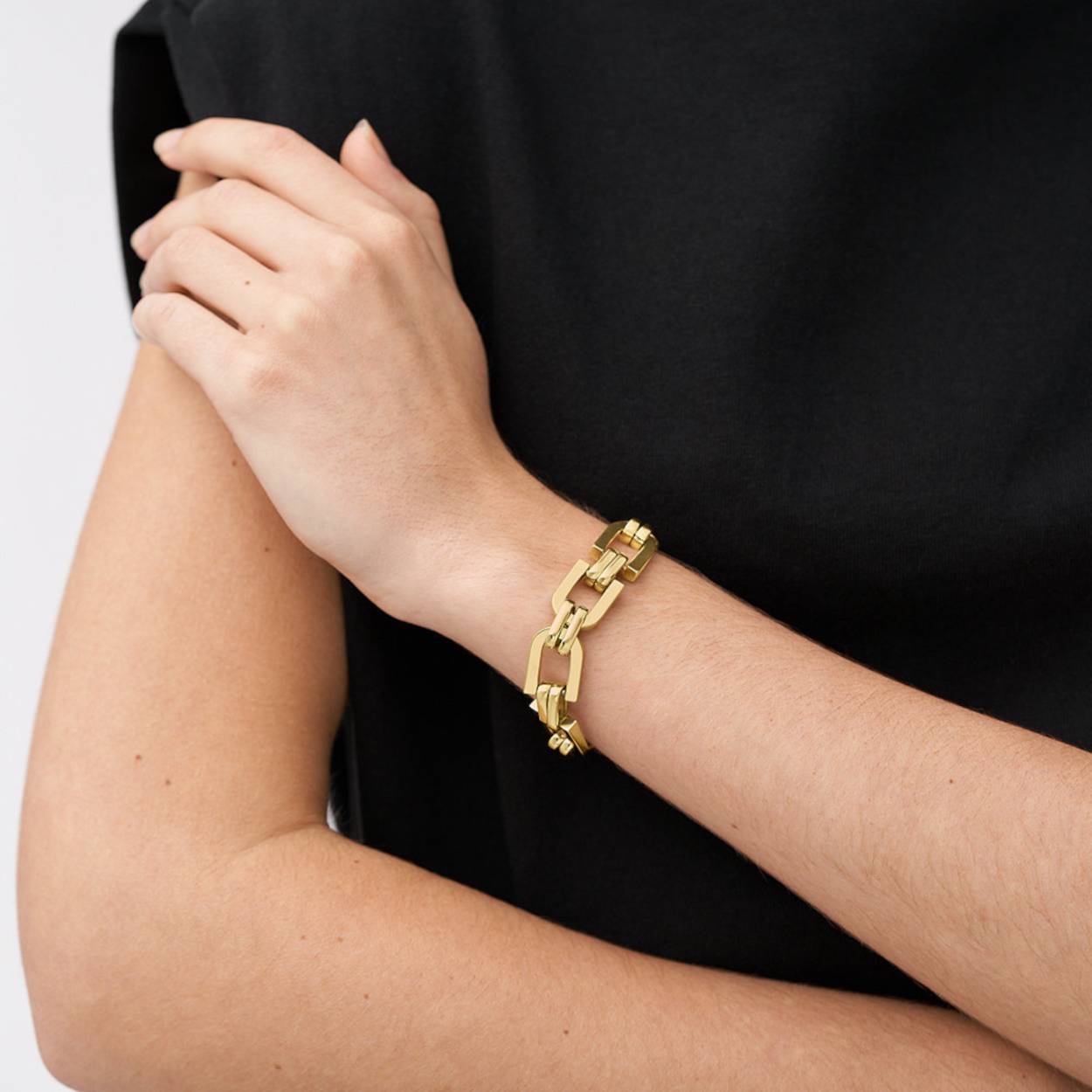 De Fossil Heritage Jewellery-collectie toont een gedurfd en tijdloos design. Deze opvallende goudkleurige armband met drukclipsluiting kan op zichzelf gedragen worden als statement piece, of gelaagd met je favoriete horloge en armbanden.