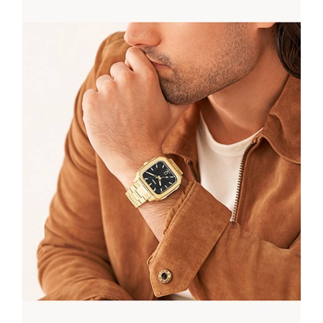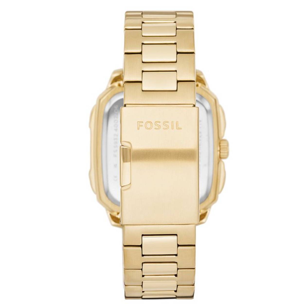 Dit Fossil horloge, uit de Inscription collectie, heeft een vergulde stalen band en kast. De wijzerplaat is zwart met goud met witte indexen en wijzers.