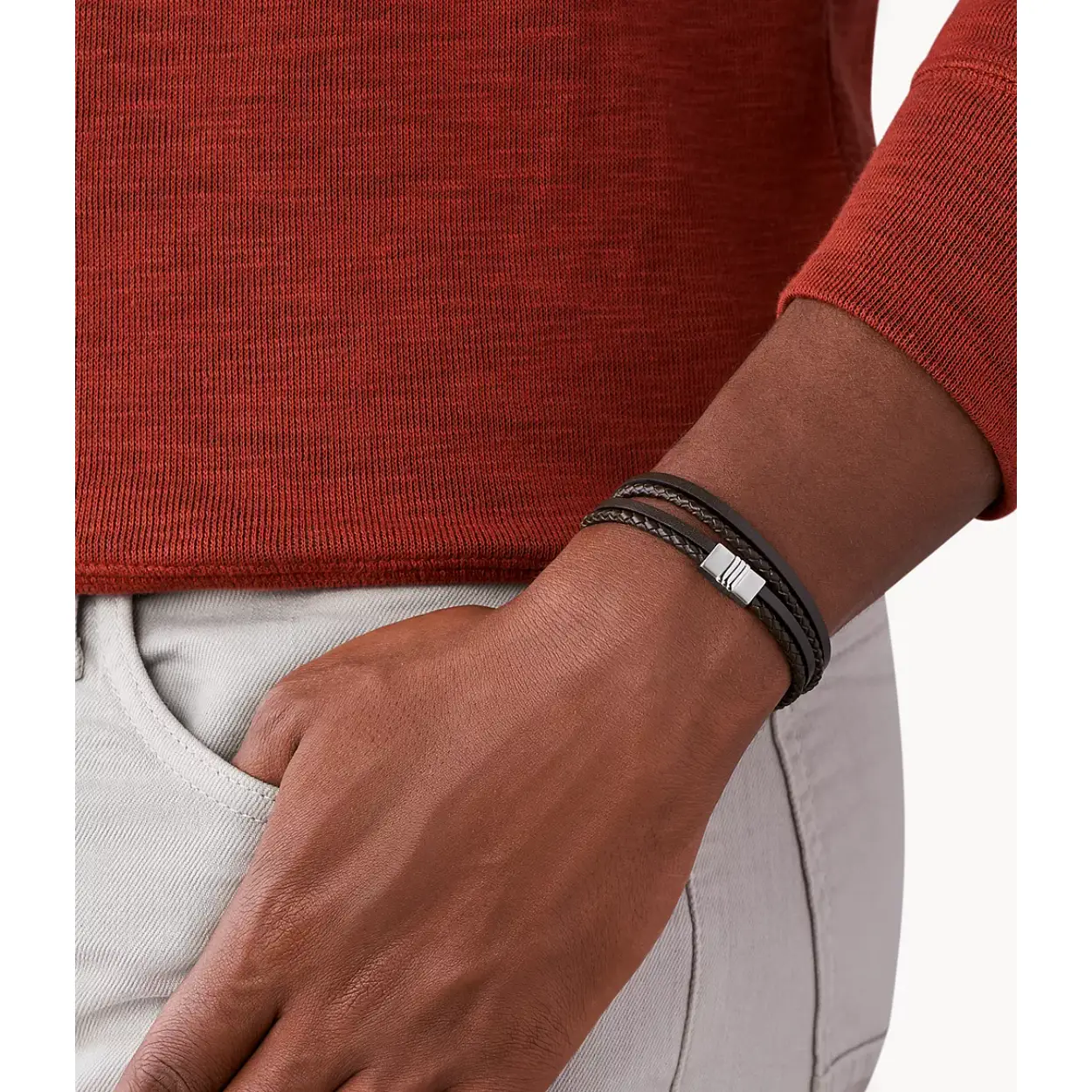 Bruine leren armband van het merk Fossil. DE armband is voorzien van een stevige magneetsluiting