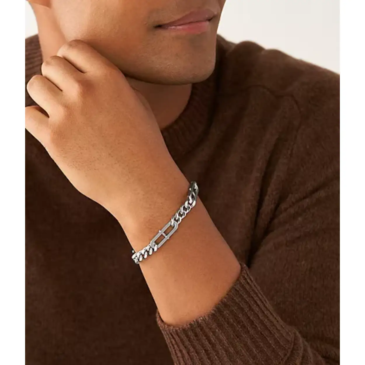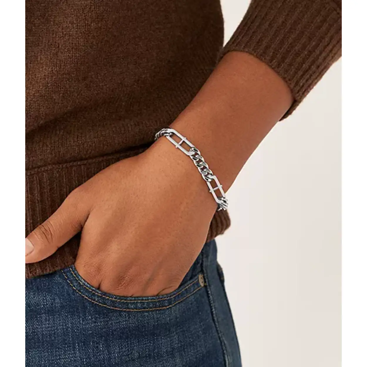 Stalen armband, van het merk Fossil, in gourmet schakel. De armband heeft een mat/glans afwerking