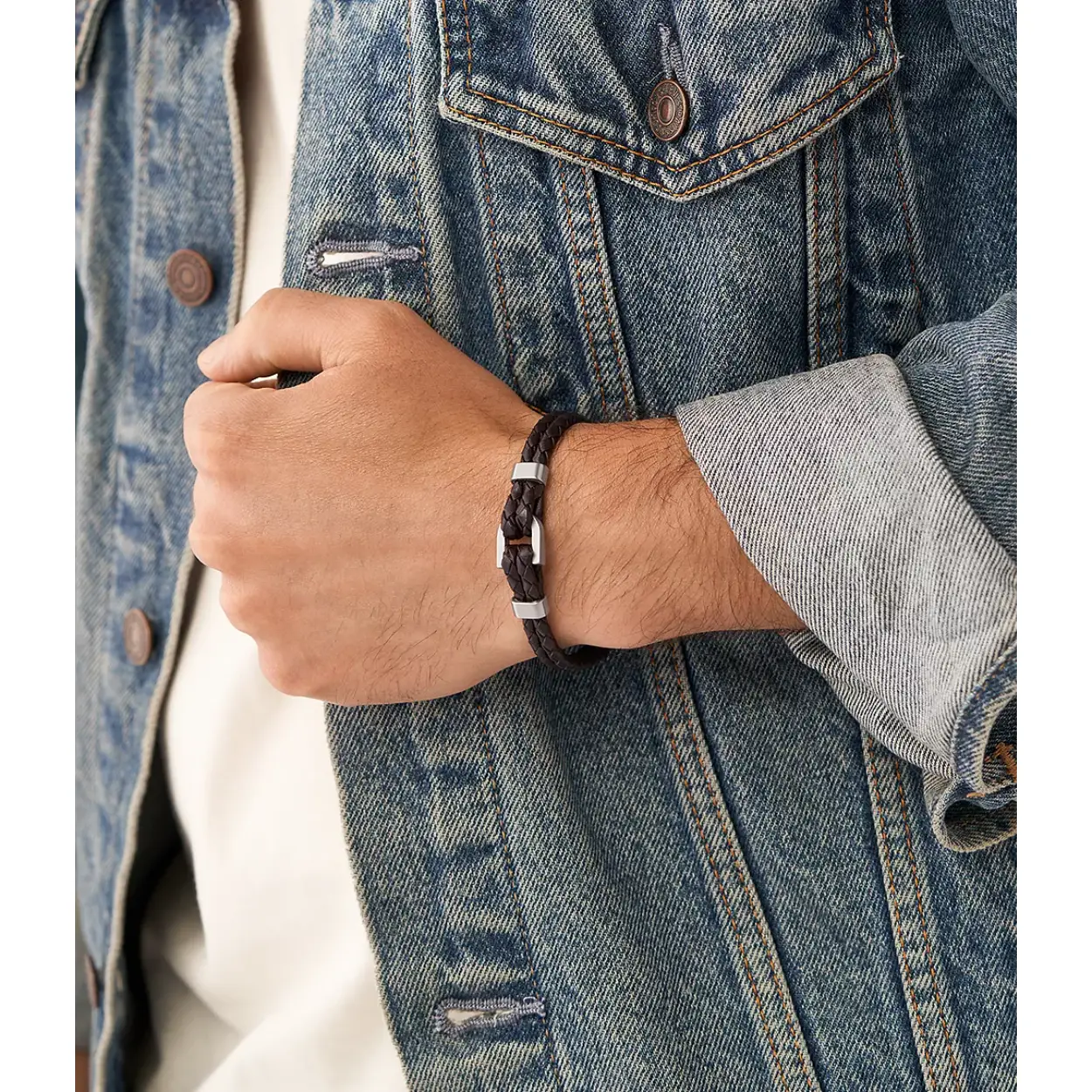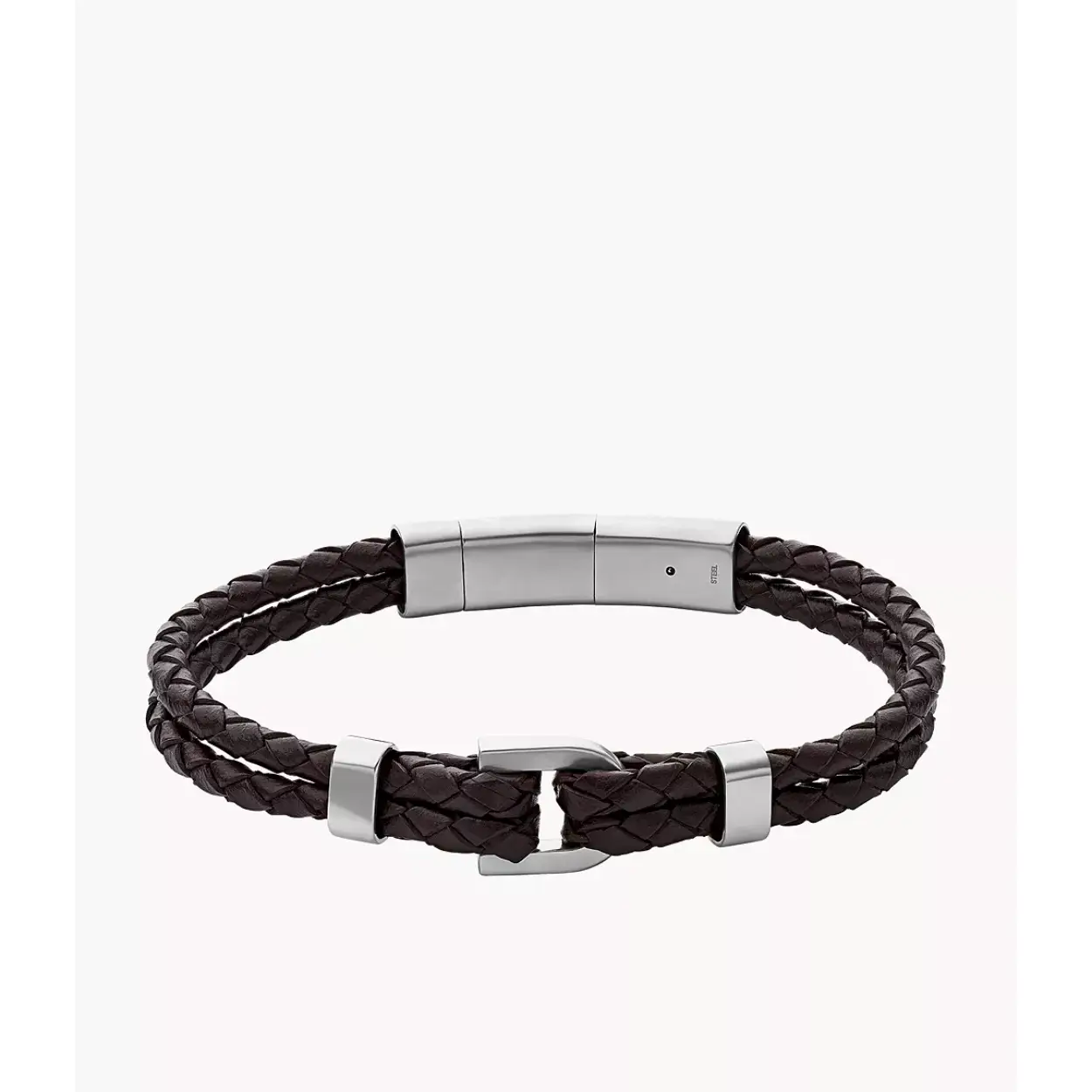 Bruine leren armband van het merk Fossil, met in het midden een stalen schakel