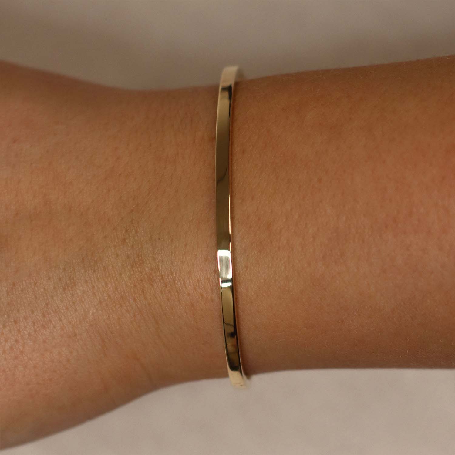 Dit is een armband van het merk GLOW vervaardigd van een 14k gouden buis verstevigd met een massief Sterling zilveren kern. Heeft een draag diameter van 60 mm.