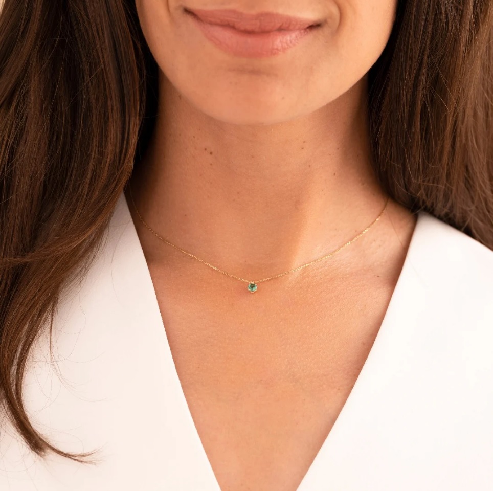 14k witgouden collier, in anker schakel, met een hanger met een blauwe zirkonia