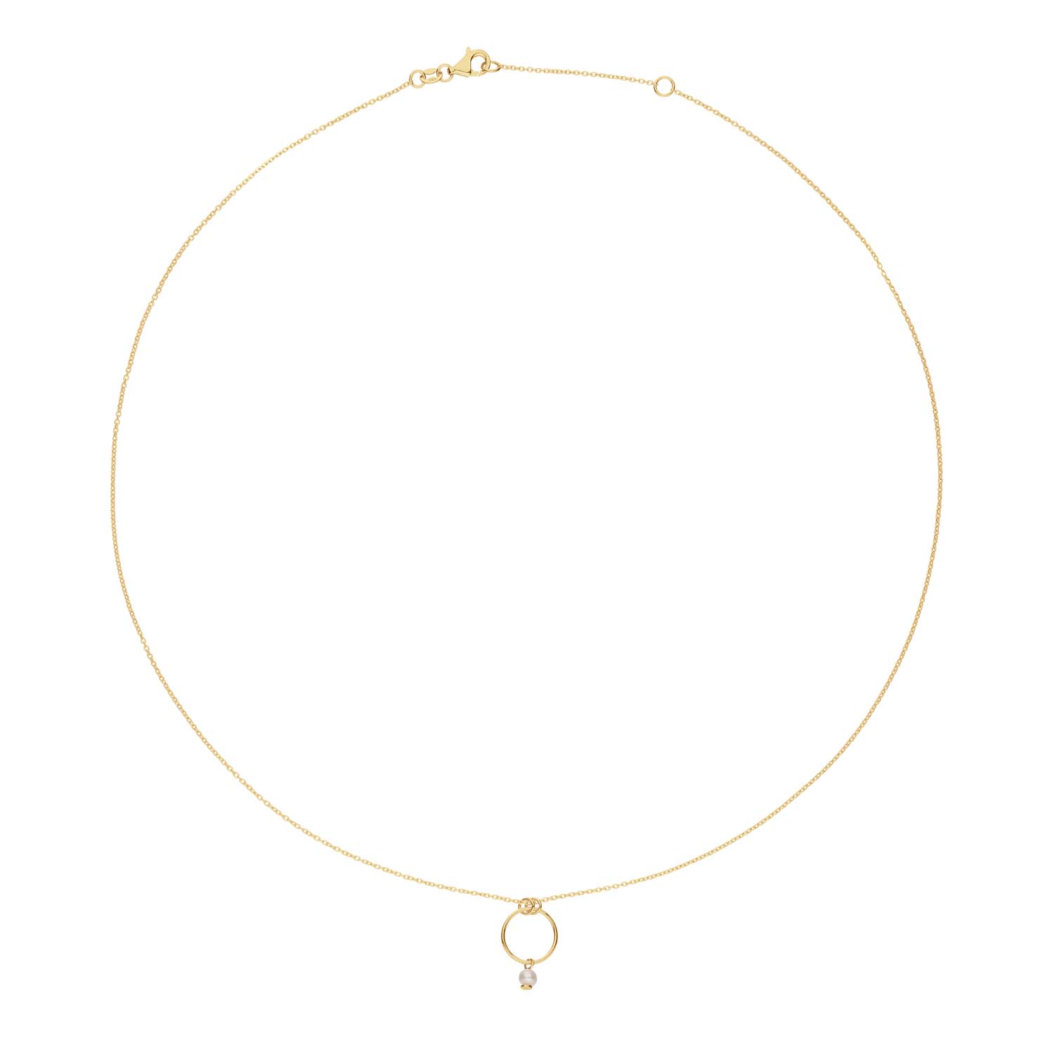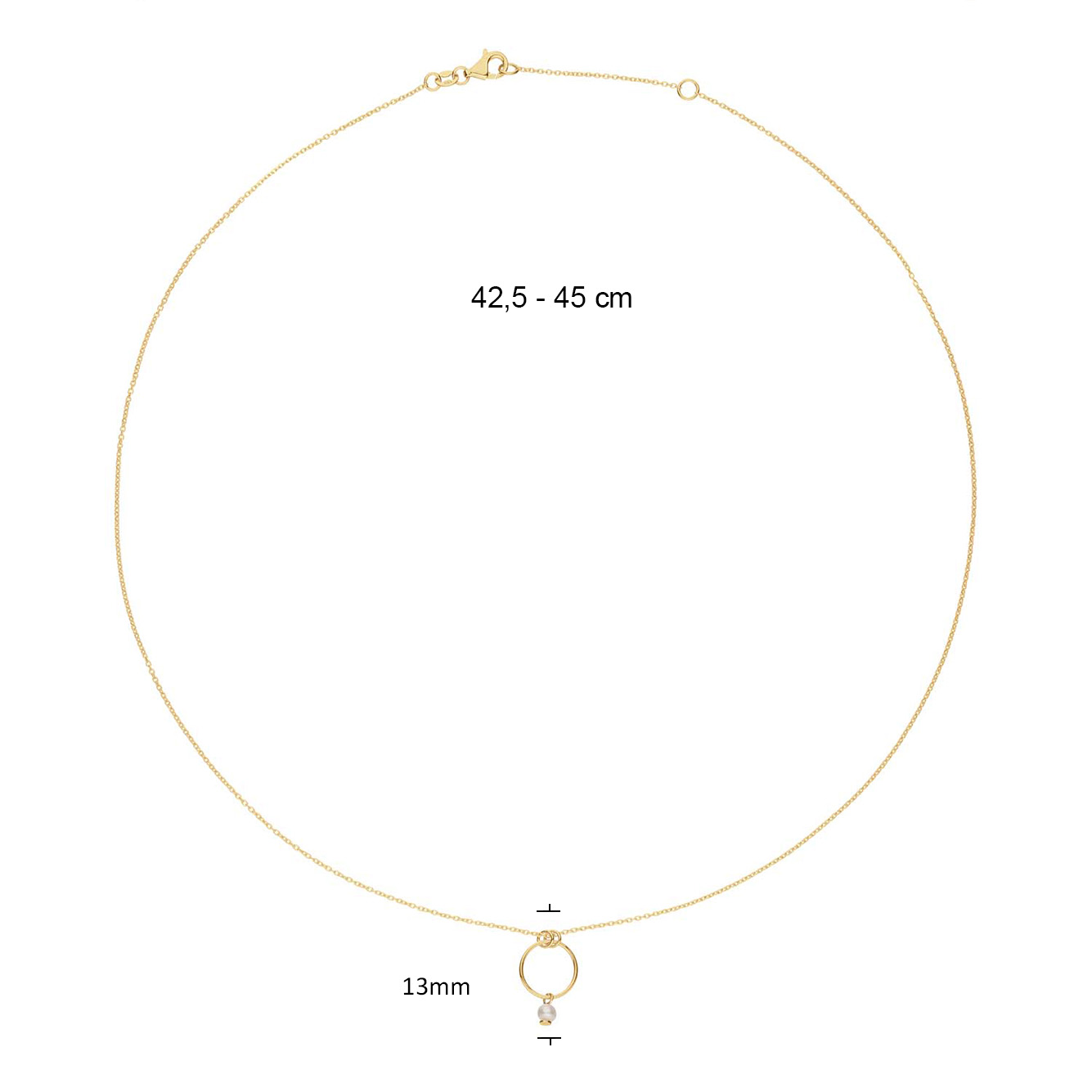 14k geelgouden collier met een fijn parelhangertje. Het collier heeft twee eindogen is op twee lengtes te dragen