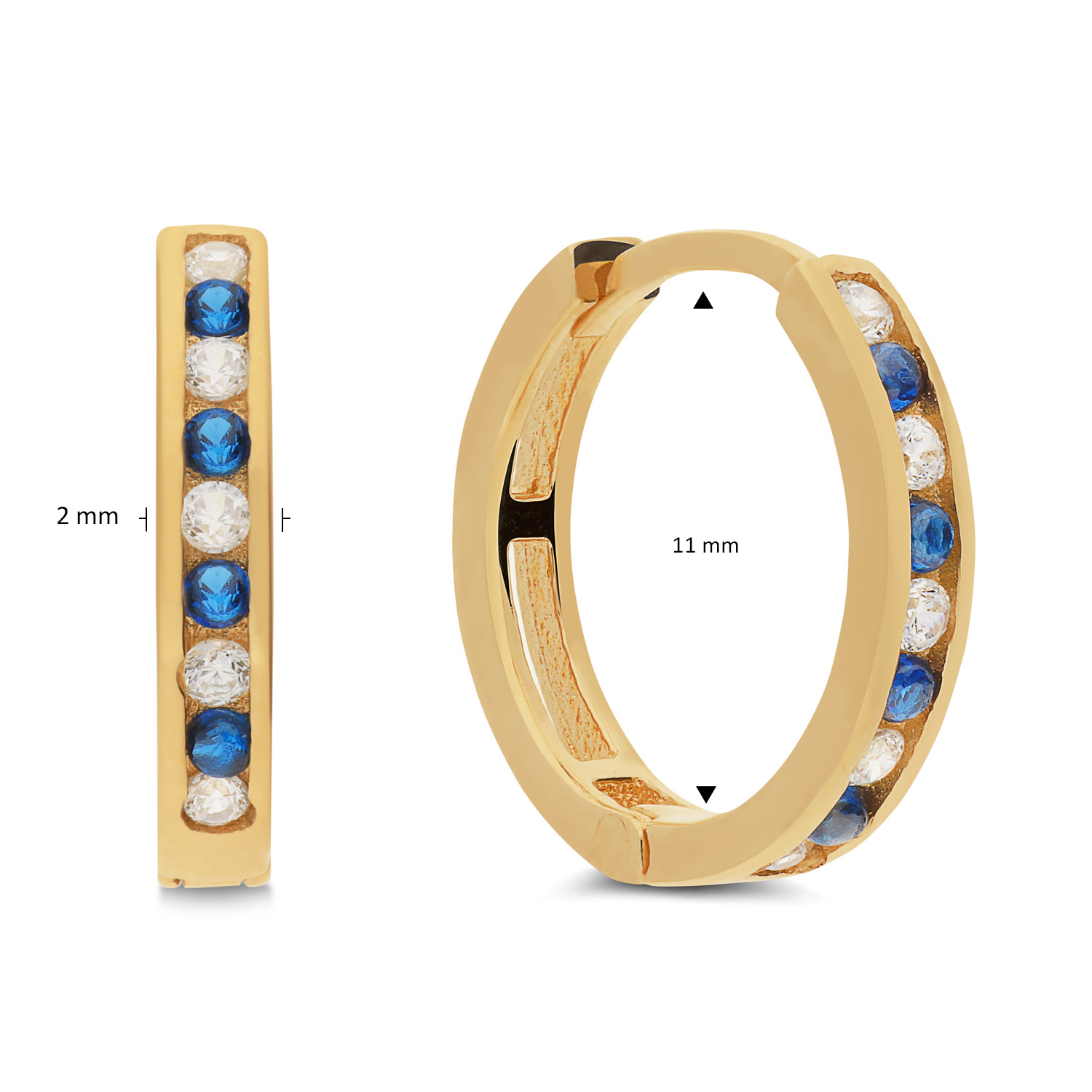 Deze oorstekers van Glow zijn echte eyecatchers door de prachtige saffier edelstenen en zirkonia's. Ze hebben een afmeting van 11mm en zijn gemaakt van 14 karaat geelgoud. Combineer ze met andere sieraden van Glow voor een unieke look.