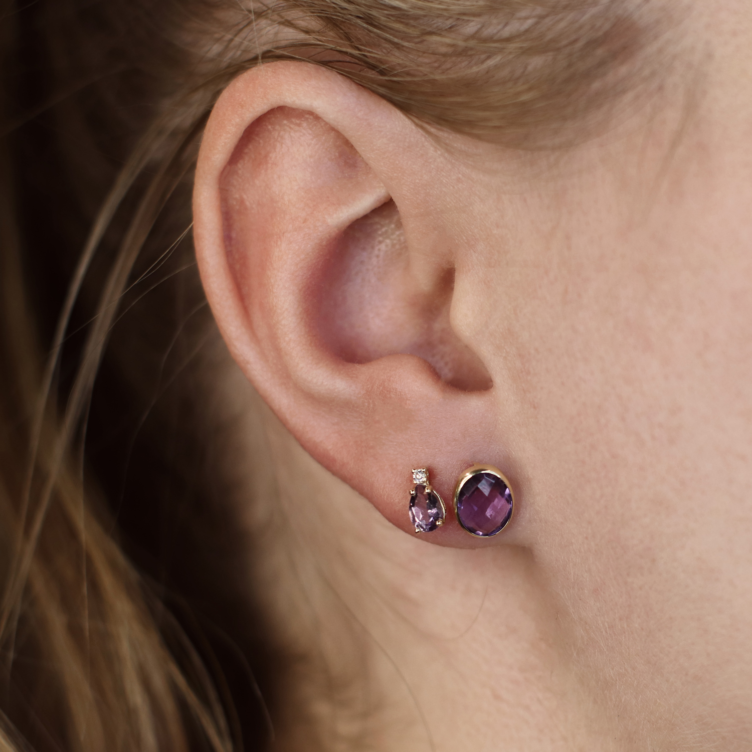 14k geelgouden oorstekers met een ovale gefaceteerde amethyst