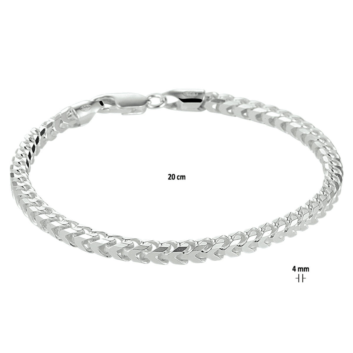 Zilveren armband met een gourmet schakel. De armband heeft een schakelbreedte van 4mm en een draaglengte van 20cm. Uitgevoerd met een karabijn sluiting.