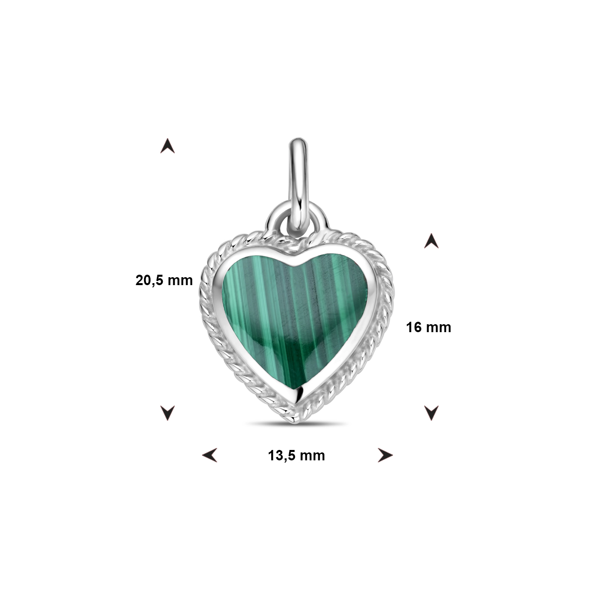 Gerhodineerd 925 zilveren hanger met een malachiet in vorm van een hart