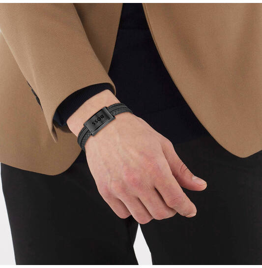 Zwart Lederen armband met een zwart gecoate stalen sluiting, die verstelbaar is van 19 tot 21cm