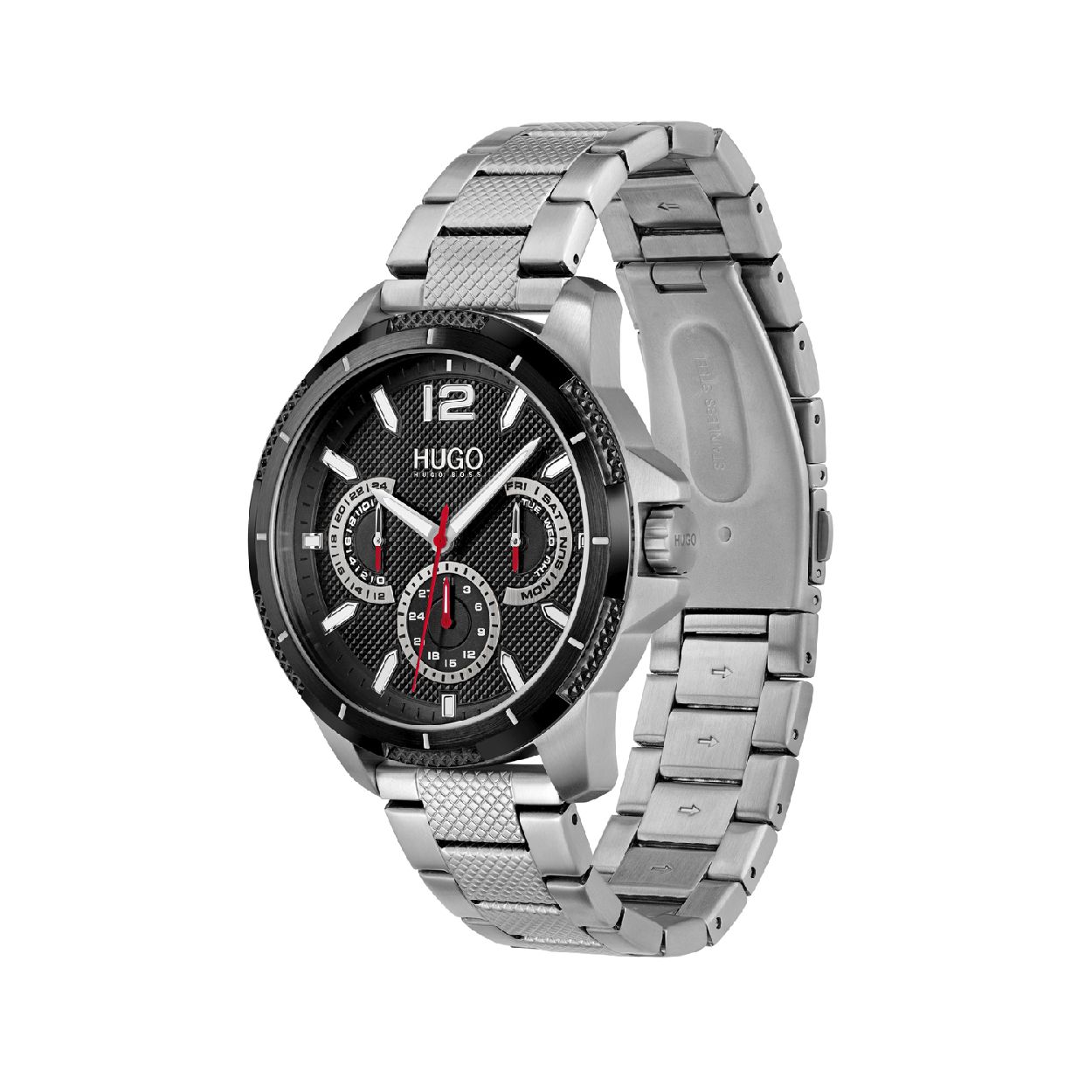Dit multifunctionele horloge uit de Sport collectie van HUGO is de definitie van een gedurfde stijl. Een stoer design met onderscheidende details, gemaakt voor de HUGO-man die graag opvalt door zijn eigen stijlkeuzes. De details op de gestempelde wijzerplaat benadrukken het sportieve karakter van de collectie. De drie 'subdials' tonen de 24-uurs klok, de dag van de maand en de dag van de week. De laatste begint op vrijdag, met een knipoog naar de vrijgevochten geest van de HUGO man.