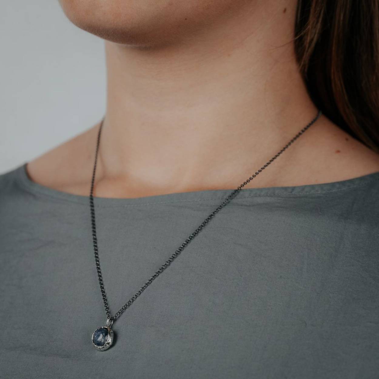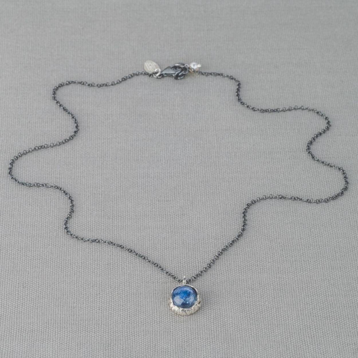 Geoxideerd zilveren collier met een zilveren hanger in combinatie met Kyaniet