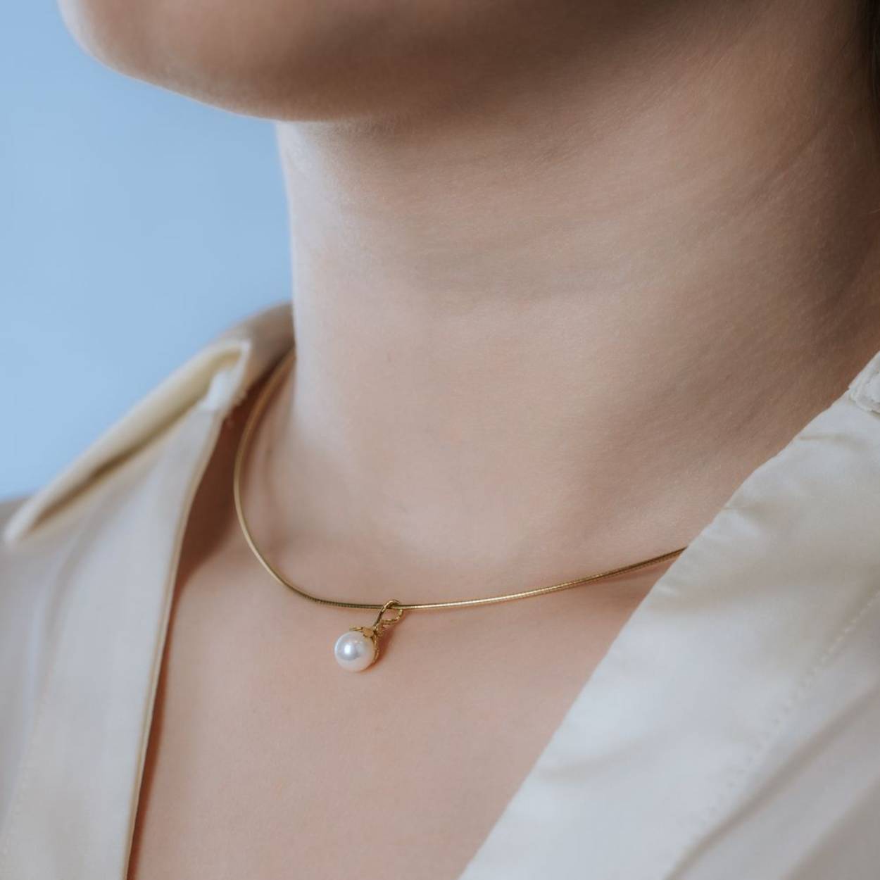 14k Geelgouden hanger met een florale afwerking en een witte ronde zoetwater parel.