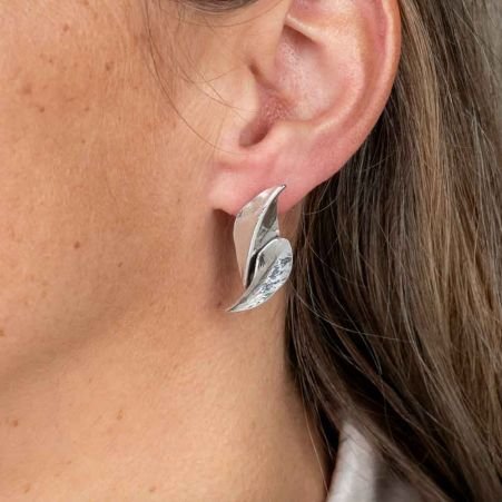 Deze elegante oorstekers van 925 sterling zilver zijn gemaakt met een organische vinvorm. De vloeiende lijnen en het subtiele reliëf geven het ontwerp een natuurlijke, verfijnde uitstraling. De oxy shiny bewerking zorgt voor een bijzonder effect: een combinatie van donkere accenten en glanzende highlights die diepte en karakter toevoegen aan het zilver. Hierdoor komen de organische vormen prachtig tot leven en krijgen de oorstekers een stijlvolle, eigentijdse uitstraling
