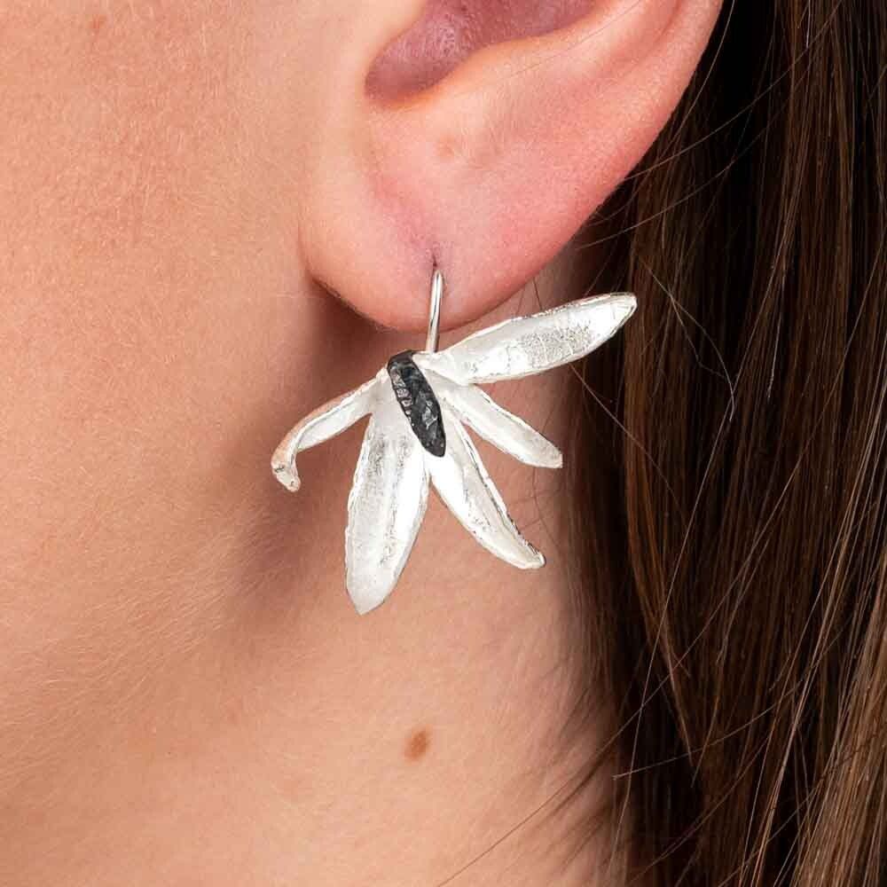 Oorhangers gemaakt van 925 steling zilver en geoxideerd zilver in de vorm van een bloem. Combineer met een mooi collier, een ring en een armband voor een complete look!