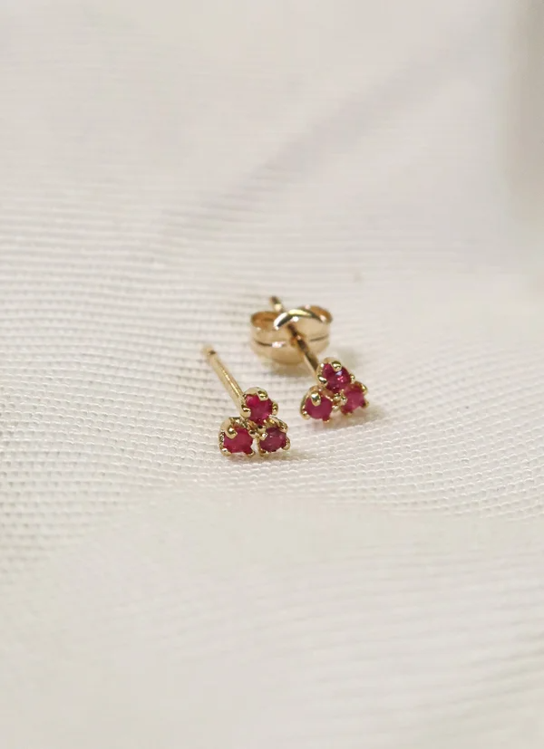 De Triangle Ruby Studs zijn gemaakt van 14K goud en Robijn-steen. De dierrode kleur die de steen kenmerkt stimuleert volgens het gezegde passie. Een sprakelende toevoeging aan jouw earparty