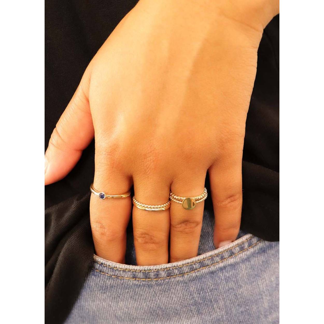 14k gouden ring, van het merk Jackie,  met bolletjes en een gebogen disc. De Bubble Disc Ring is gemaakt van 14 karaat goud. De eenvoudige en elegante ring met gebubbelde band wordt gekenmerkt door de disc in het midden. Perfect om te combineren met enkele andere ringen uit de Jackie collectie. Stack it!