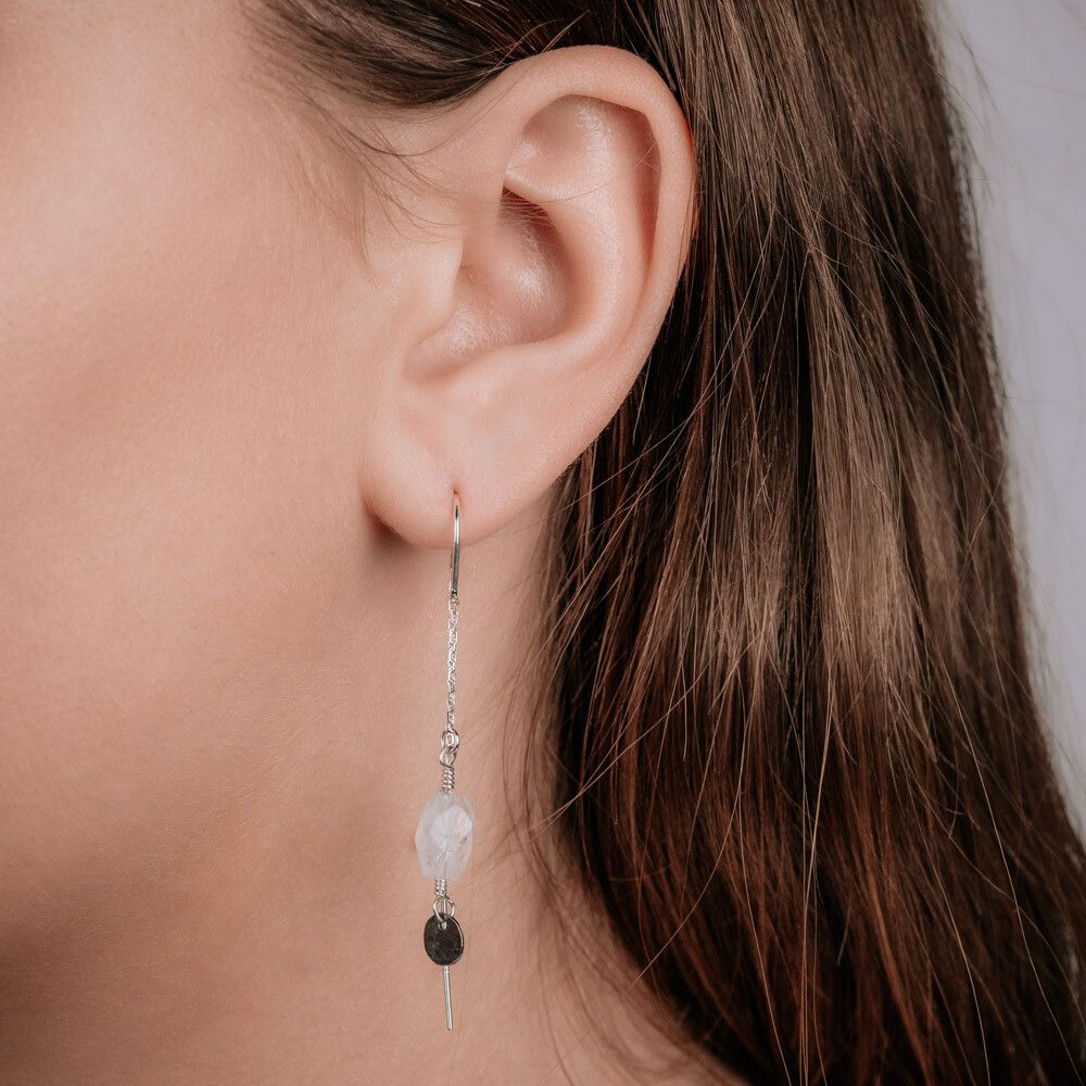 Doortrek oorbel gemaakt van 925 sterling zilver in combinatie met de edelsteen Regenboog Maansteen.