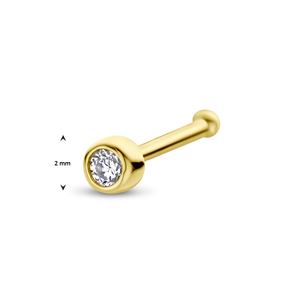14k Geelgouden neusknopje met zirkonia. Het neusknopje heeft een diameter van 2mm.