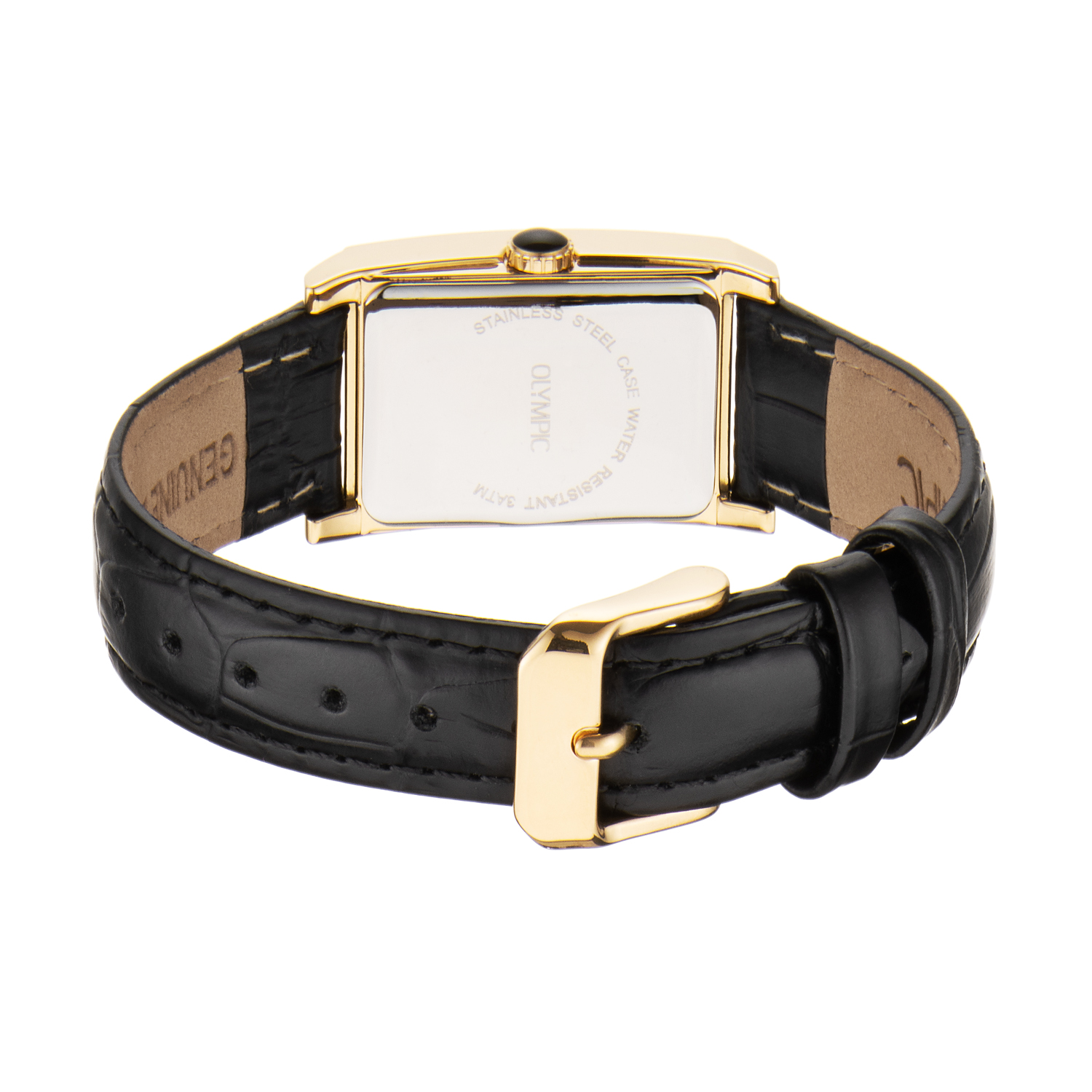 Dit Olympic horloge heeft een Roestvrijstaal kast met een diameter van 21 mm en is voorzien van een leren band. In de kast bevindt zich een Miyota kwaliteitsuurwerk en is afgewerkt met Mineraalglas.