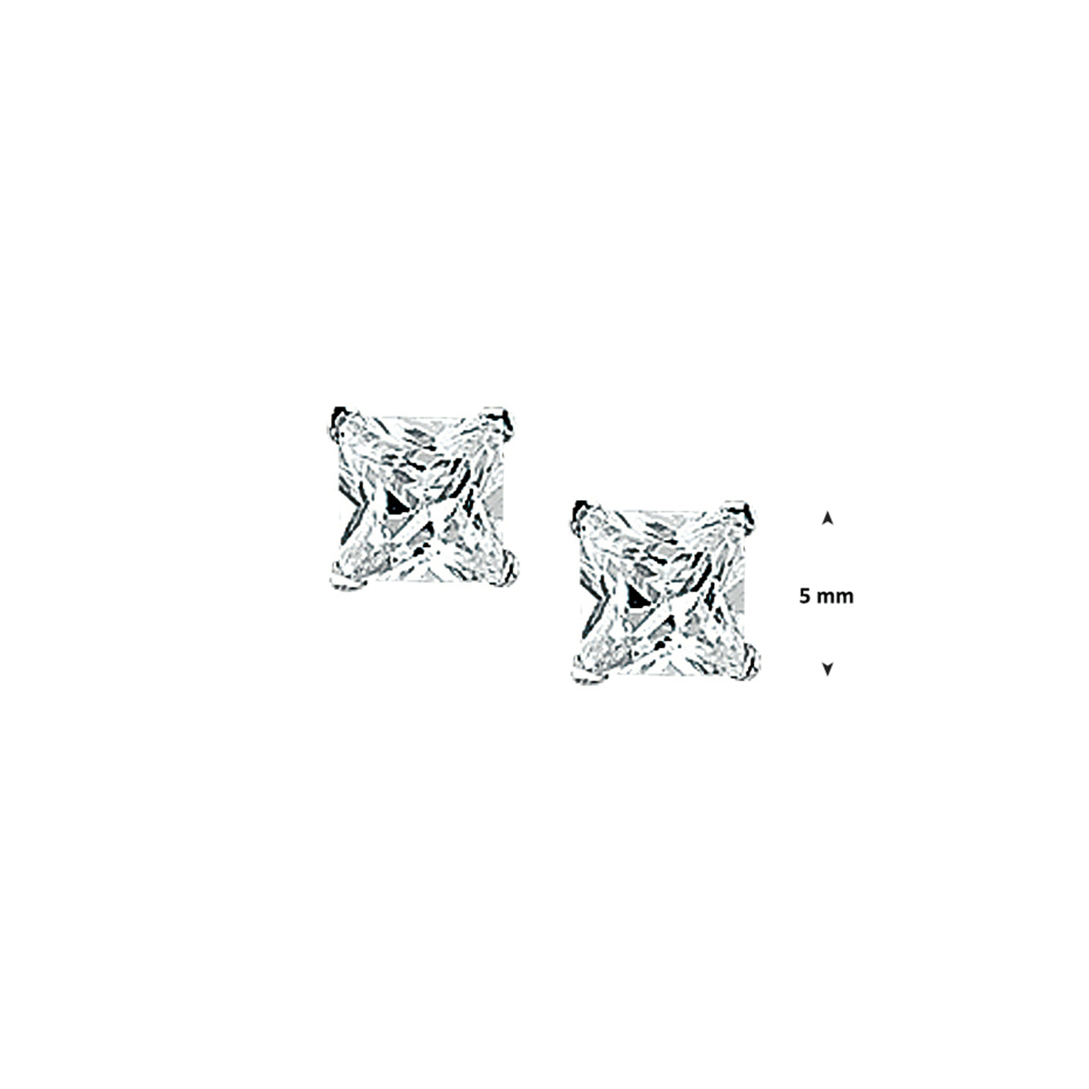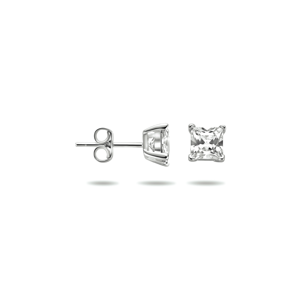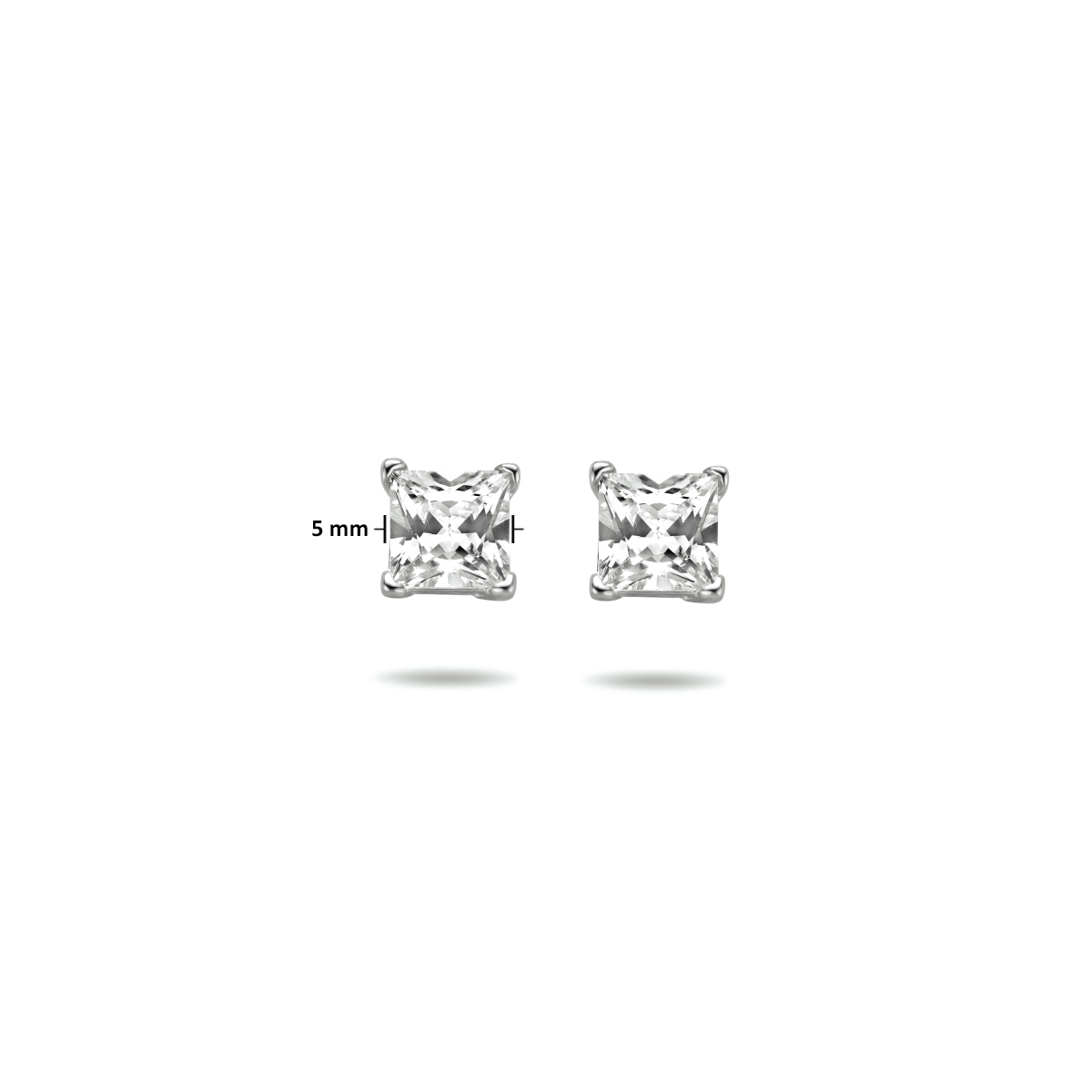 Zilver gerodineerde oorknoppen met een vierkante zirkonia