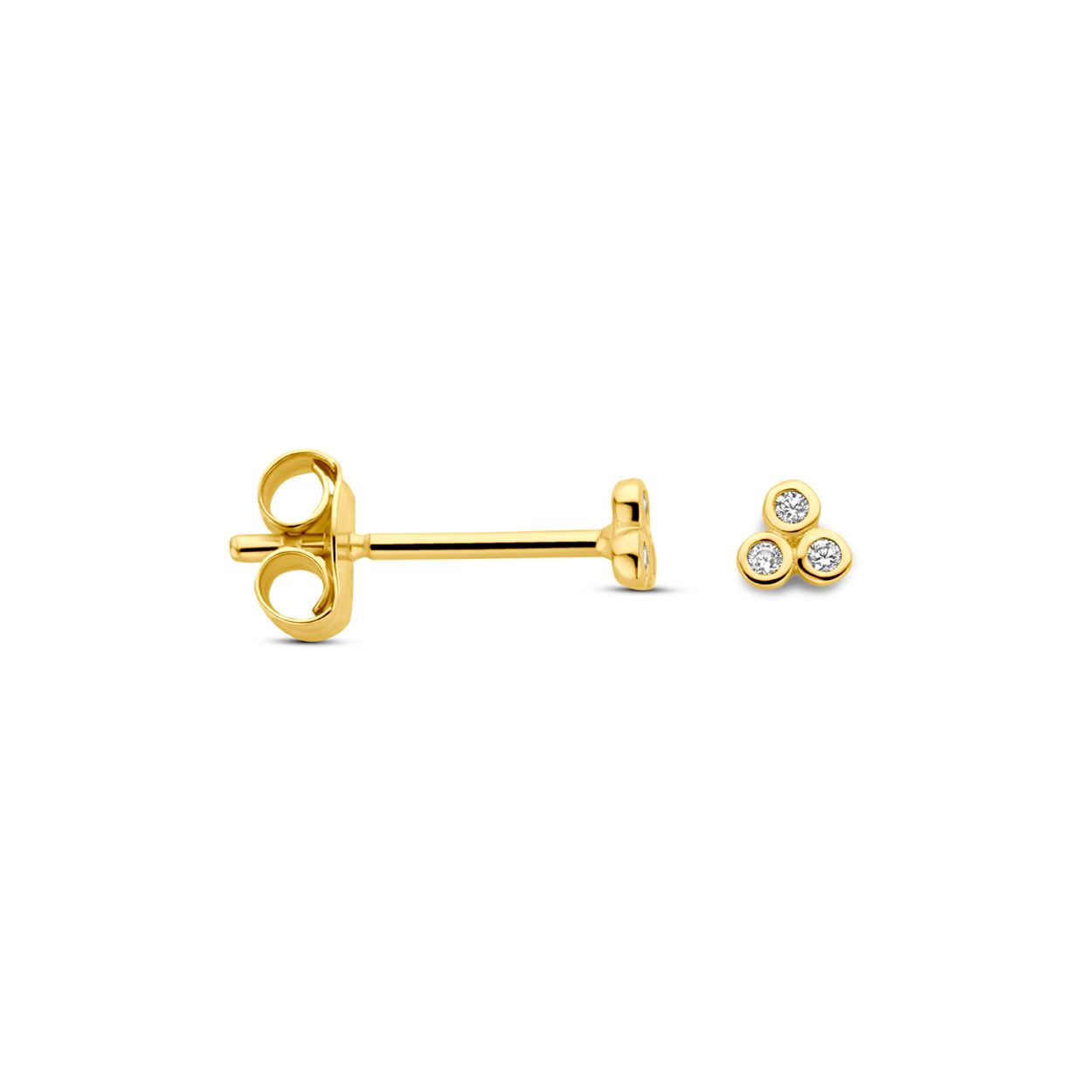 14k Geelgouden oorknoppen uitgevoerd met zirkonia. De oorknoppen hebben een diameter van 3mm.