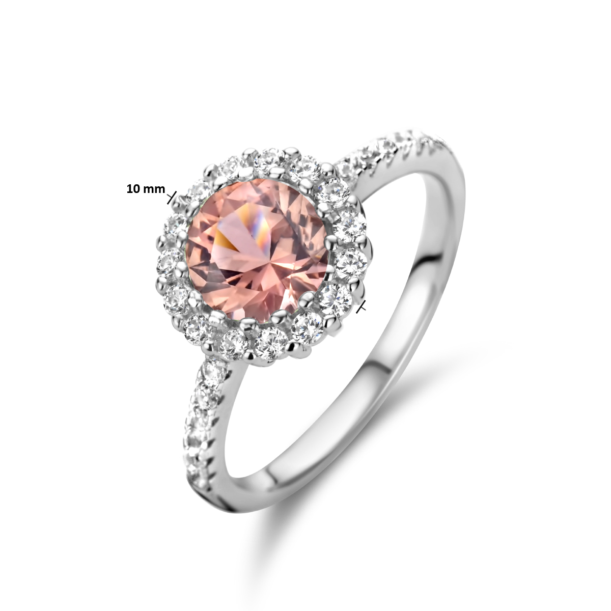 Gerhodineerd zilveren ring uitgevoerd met synthetische morganiet en zirkonia.