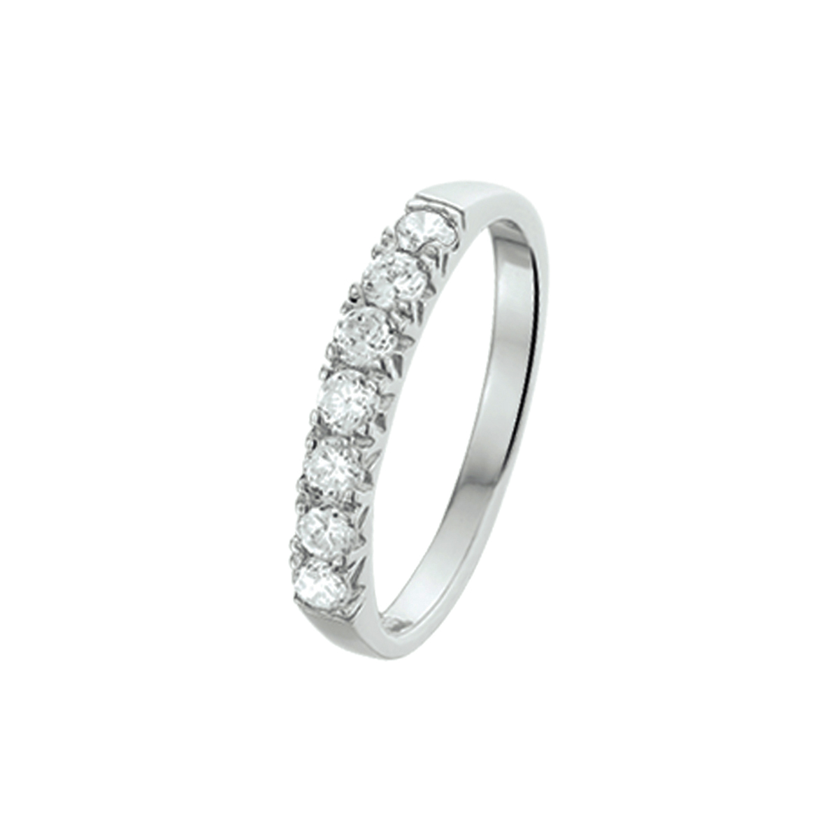 Beschrijving: Gerhodineerd zilveren ring met zirkonia.